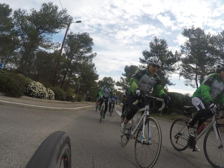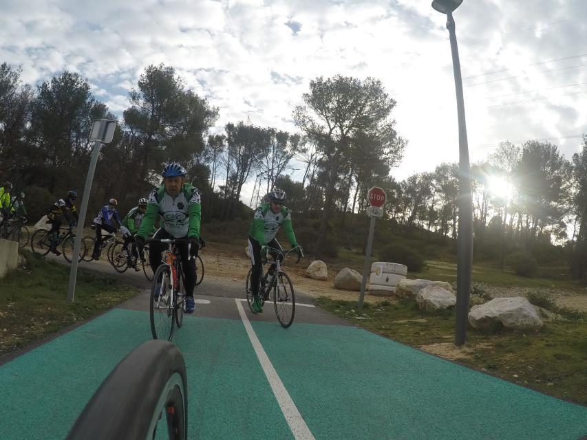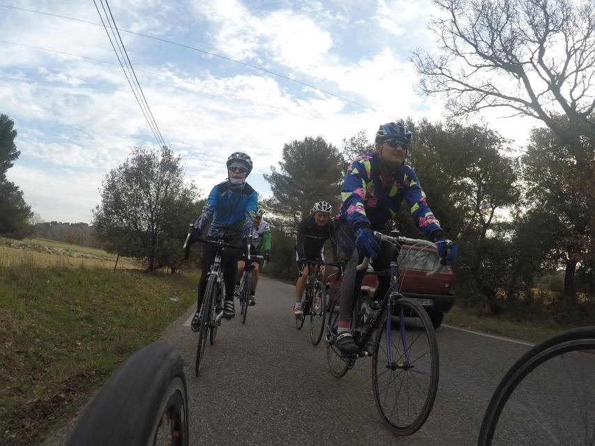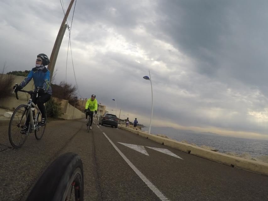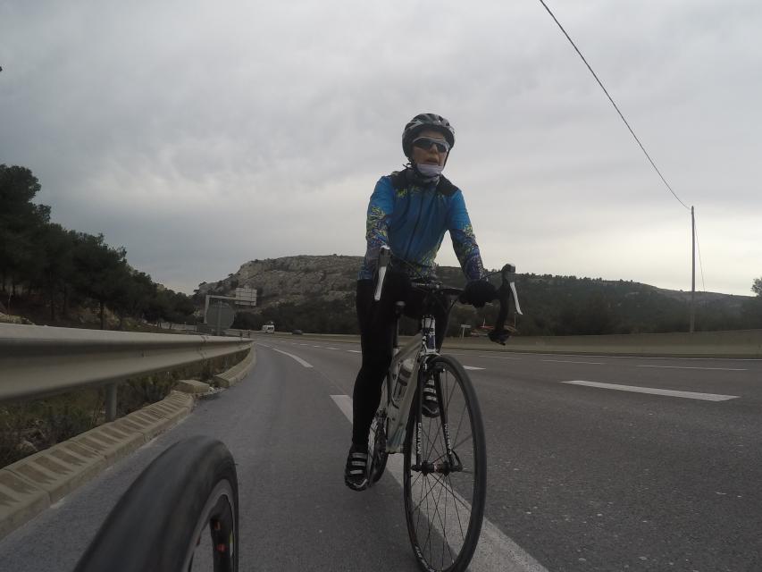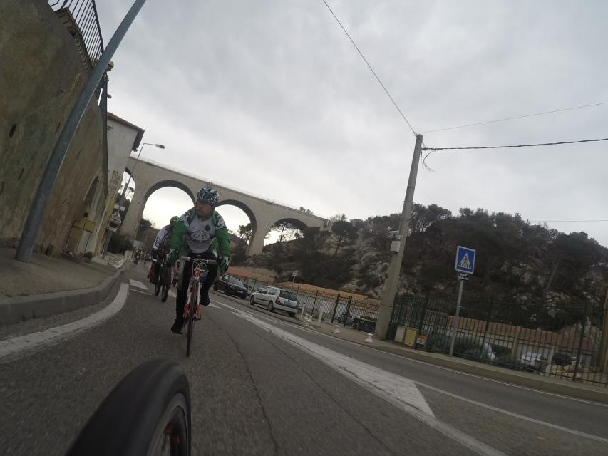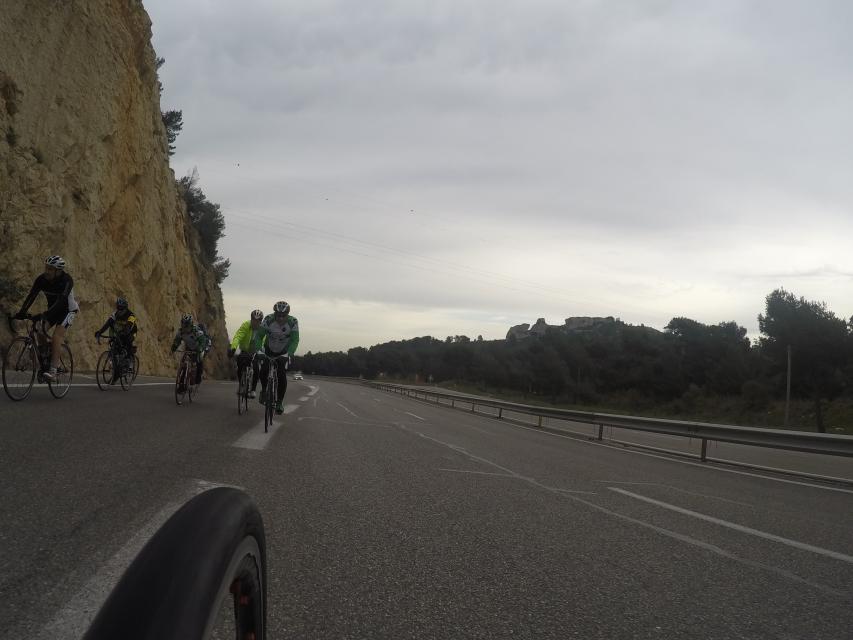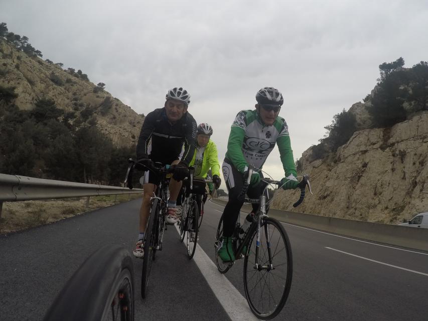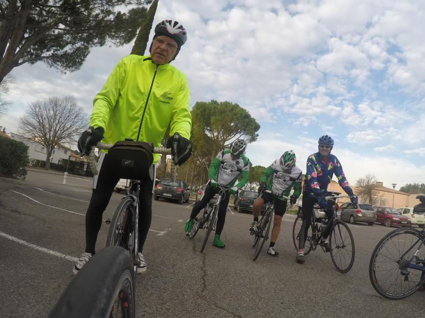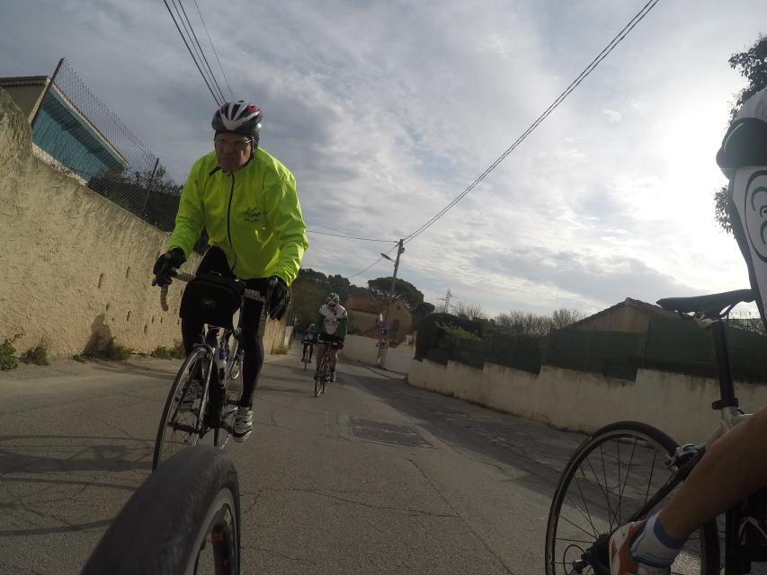 Ce matin........      Quelle aventure. On aura tout eu ; à 12 , on a trouvé le moyen de faire 10 groupes ; plusieurs ont crevé, on a eu la pluie, notre président a voulu voir si en prenant la voie rapide pour aller à Sausset les Pins, il irait plus vite que nous, mais non seulement on est arrivé avant , mais en plus il s'est perdu :-)