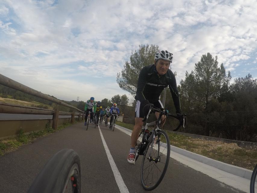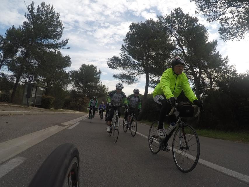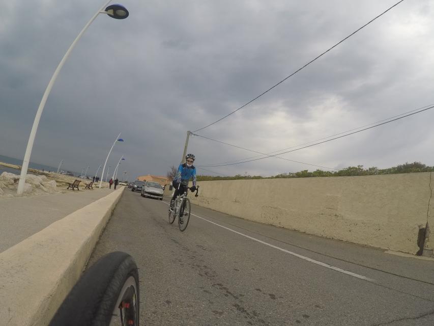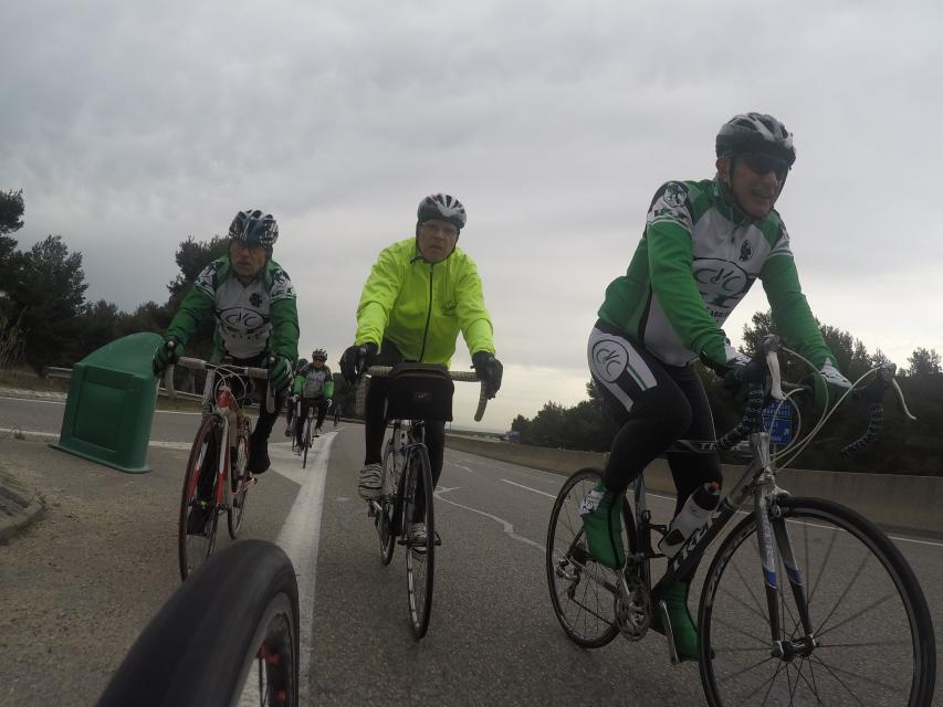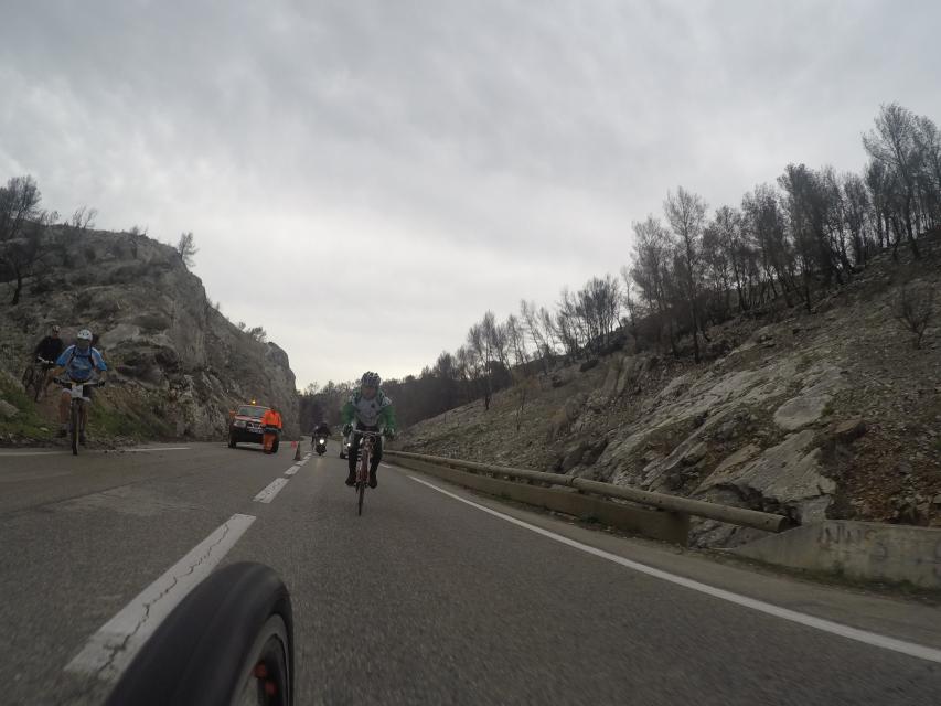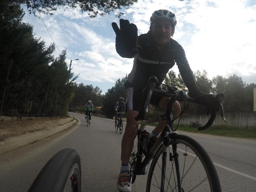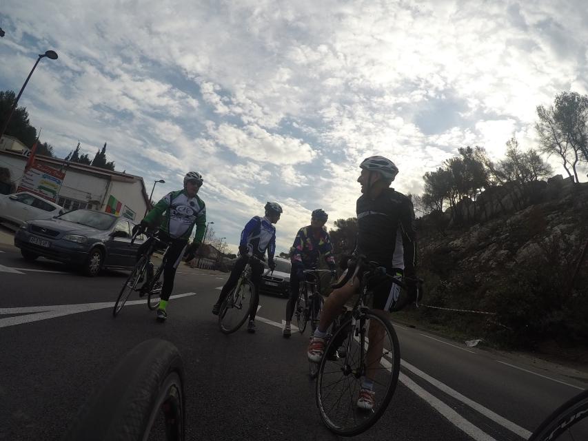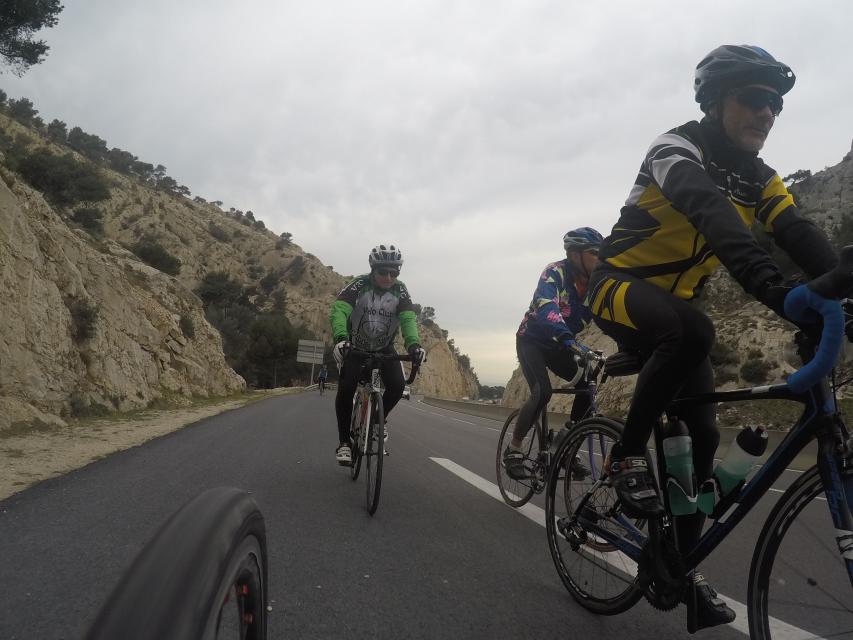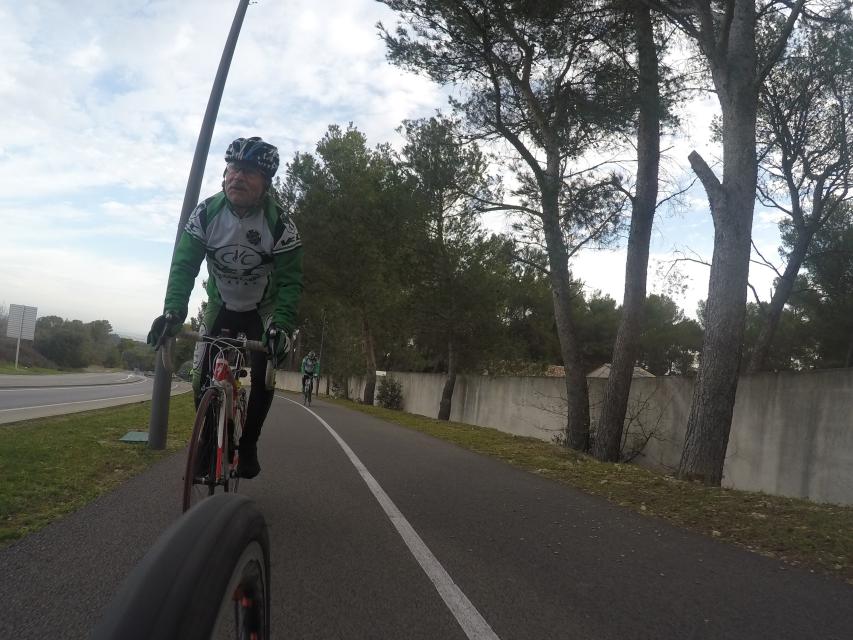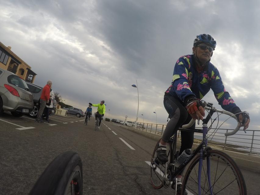 Ce matin........      Quelle aventure. On aura tout eu ; à 12 , on a trouvé le moyen de faire 10 groupes ; plusieurs ont crevé, on a eu la pluie, notre président a voulu voir si en prenant la voie rapide pour aller à Sausset les Pins, il irait plus vite que nous, mais non seulement on est arrivé avant , mais en plus il s'est perdu :-)