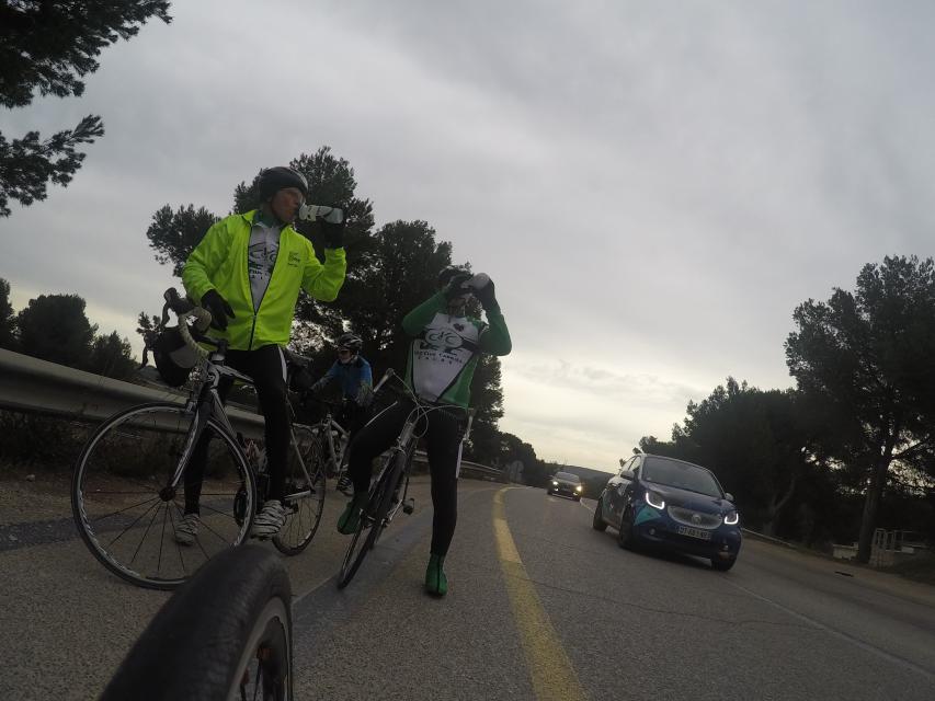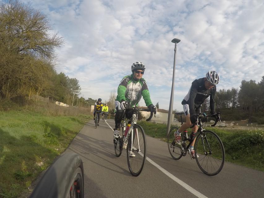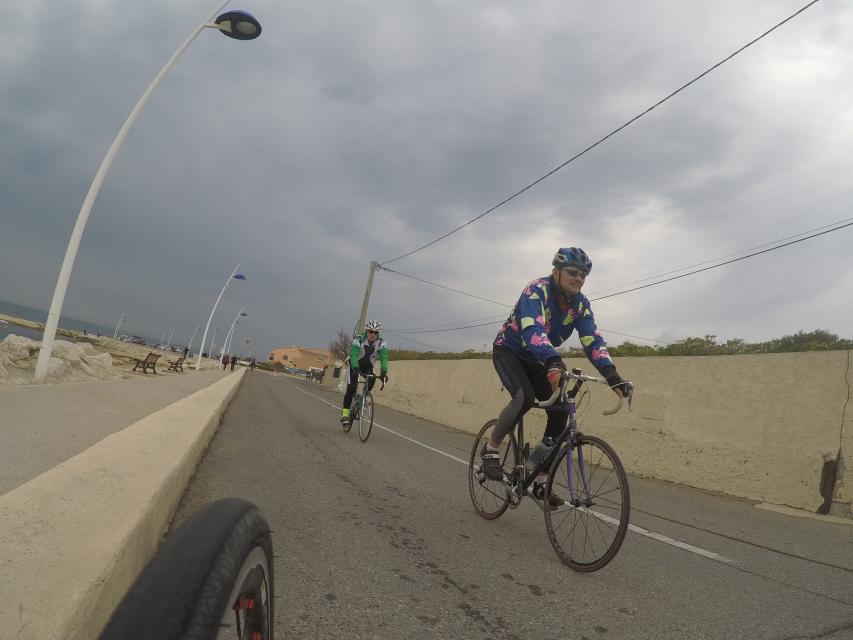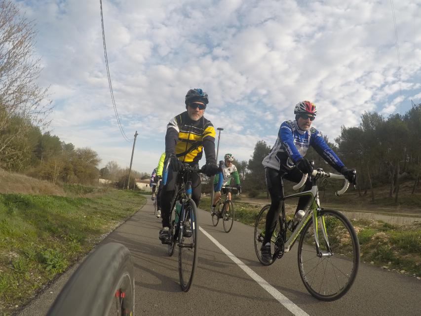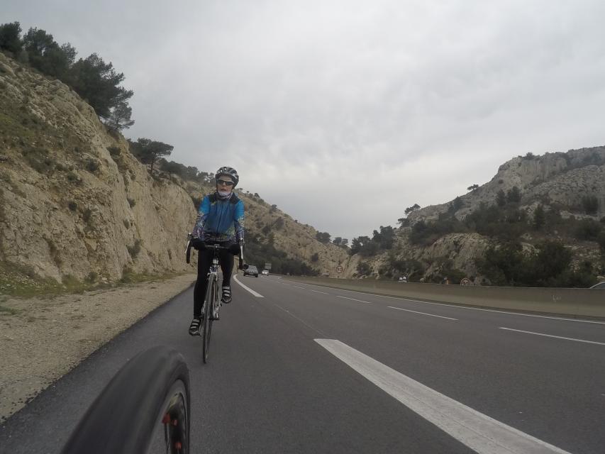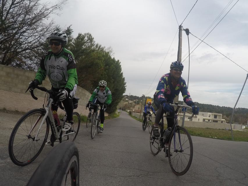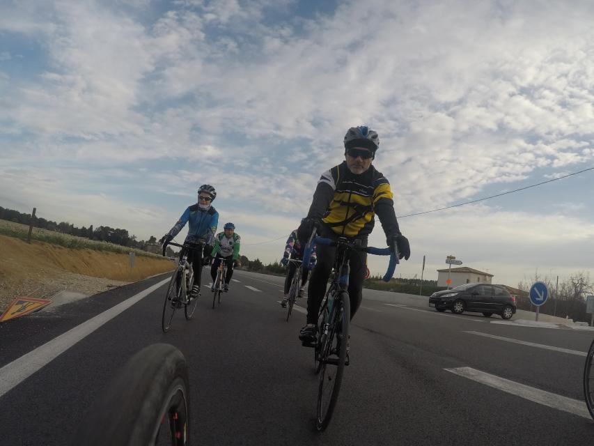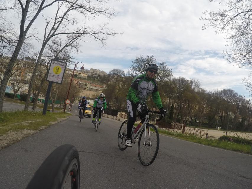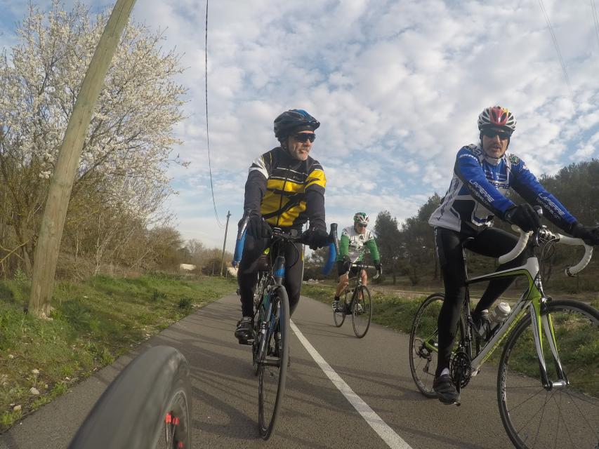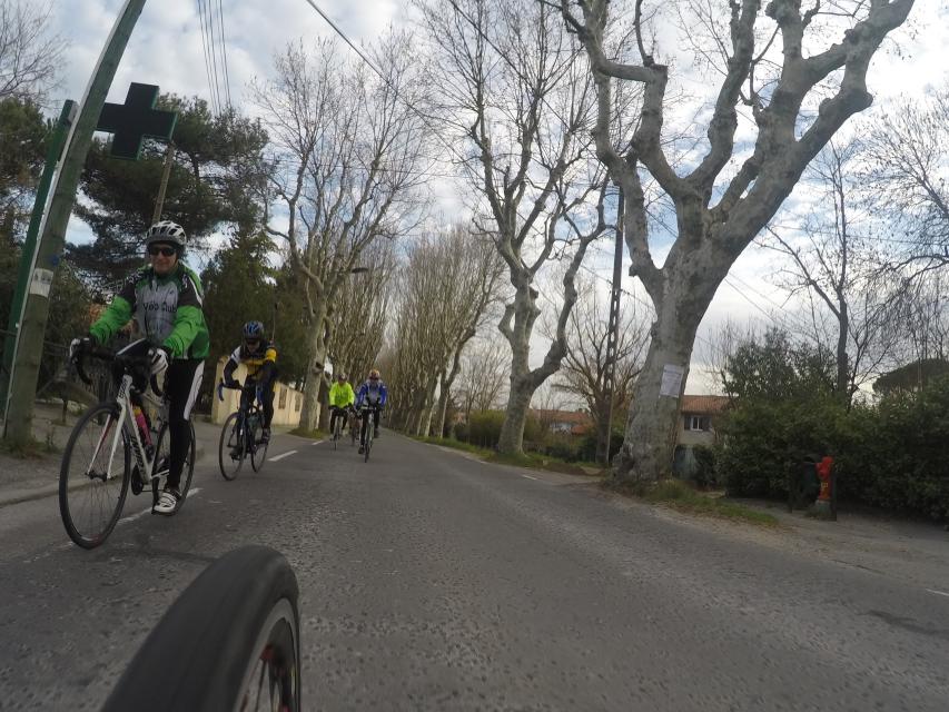 Ce matin........      Quelle aventure. On aura tout eu ; à 12 , on a trouvé le moyen de faire 10 groupes ; plusieurs ont crevé, on a eu la pluie, notre président a voulu voir si en prenant la voie rapide pour aller à Sausset les Pins, il irait plus vite que nous, mais non seulement on est arrivé avant , mais en plus il s'est perdu :-)