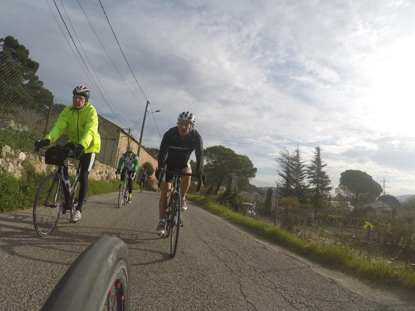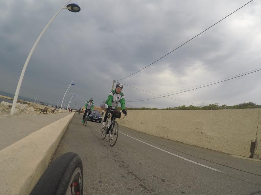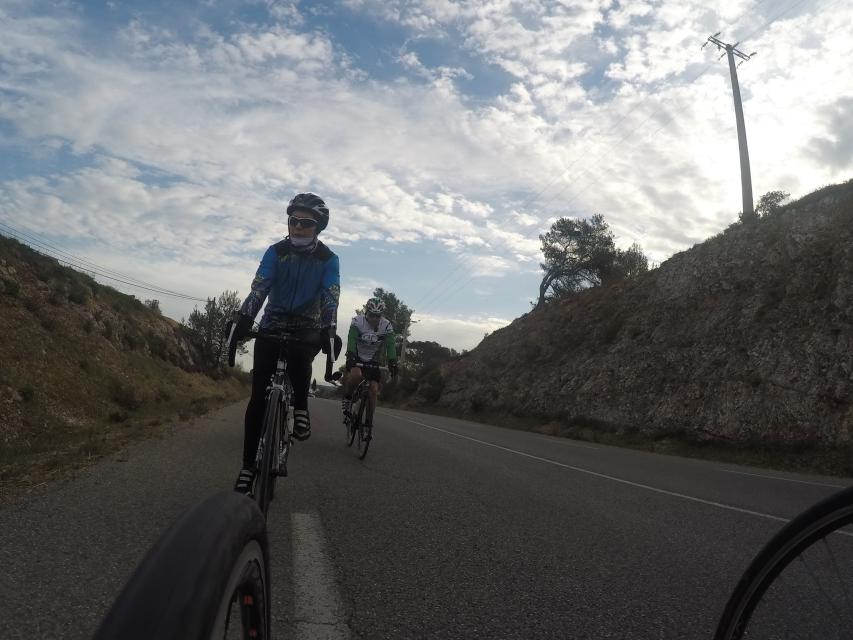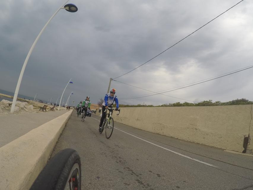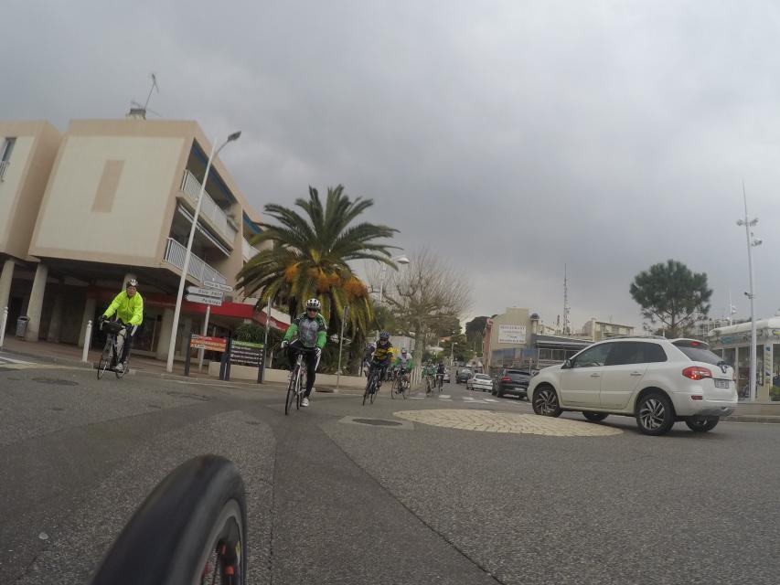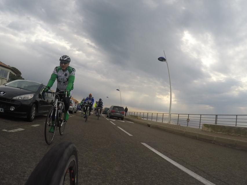 Ce matin départ 8h30...Le peloton part pour la côte bleu.....nuage et risque de pluie sont au rdv... mais pas que....