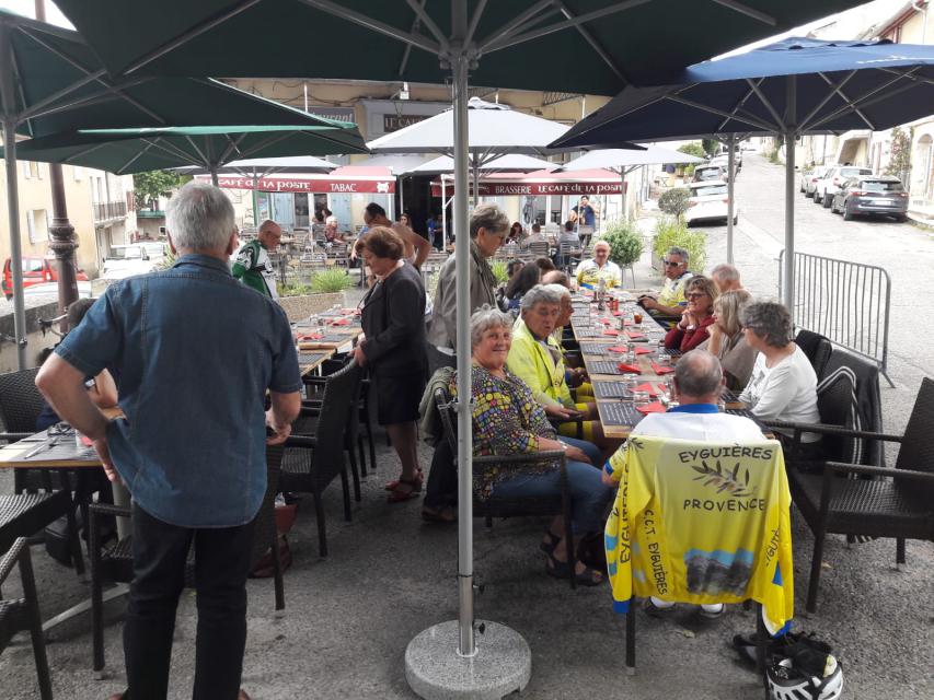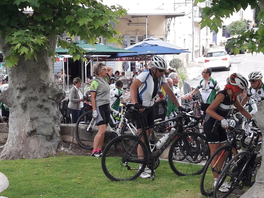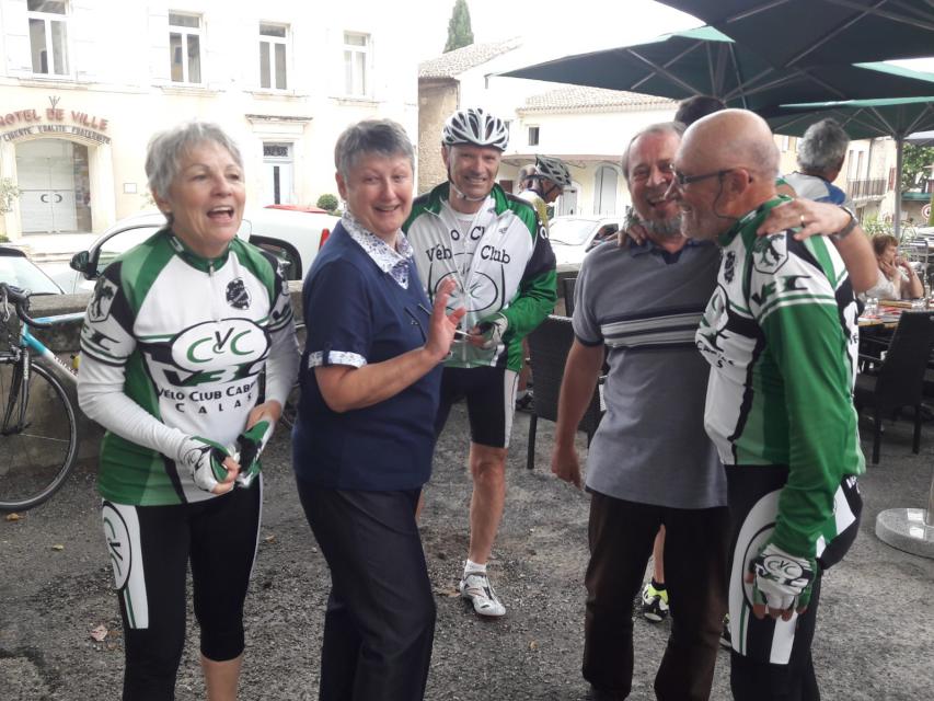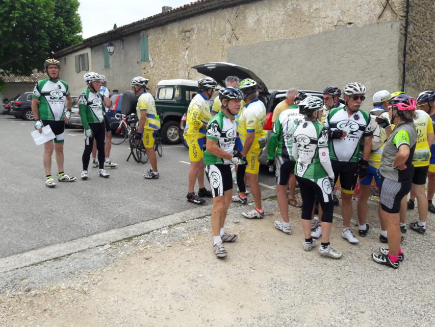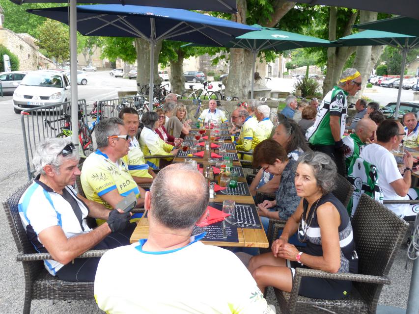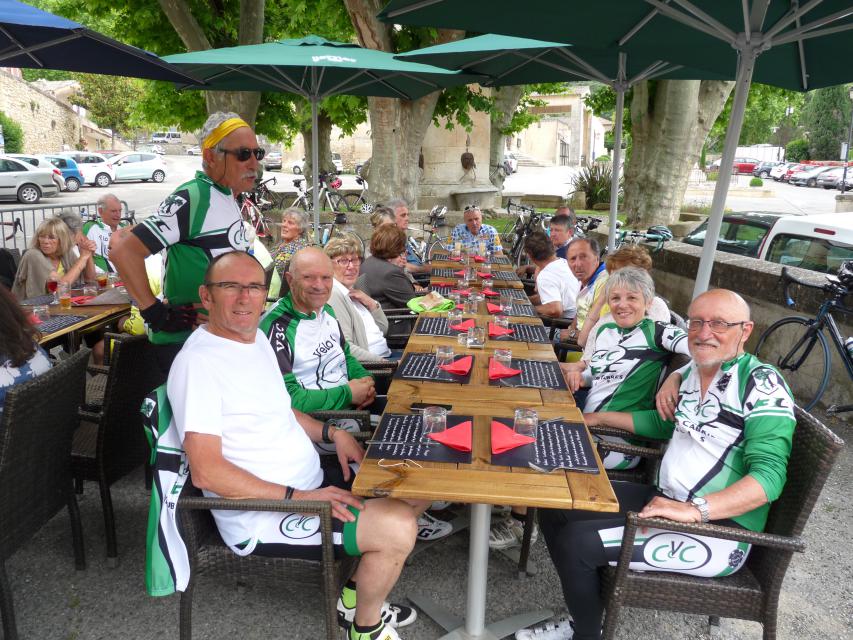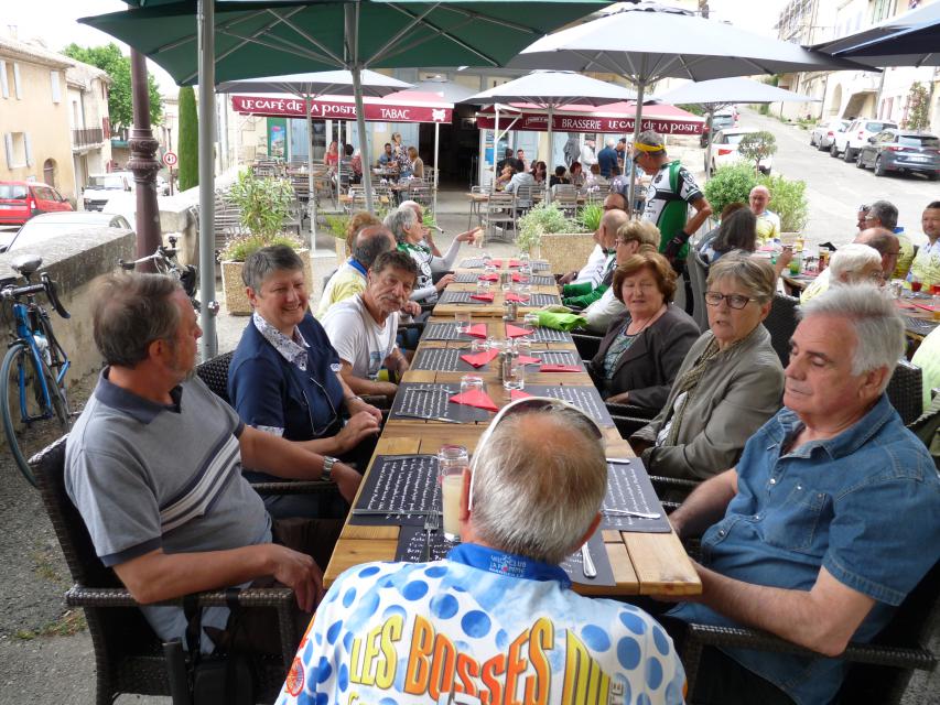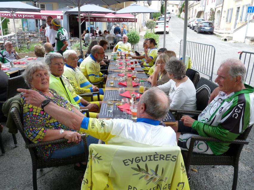 Le peloton se compose de 20 cyclistes, 8 V3C et 12 CCTE auxquels s’ajoutent les 15 accompagnateurs qui nous ont rejoints au restaurant de la poste de ROBION. A noter que les 8 V3C ont fait la grand parcours.