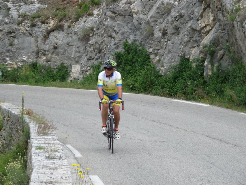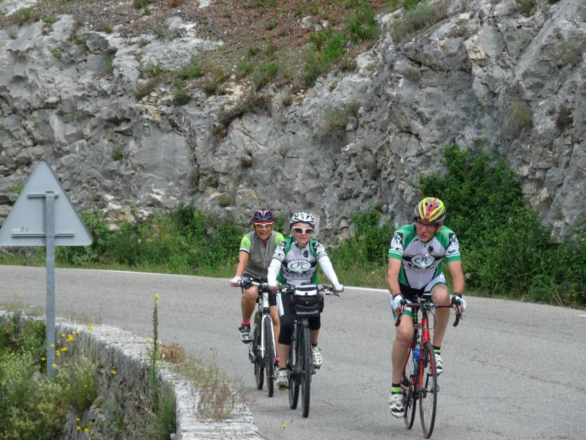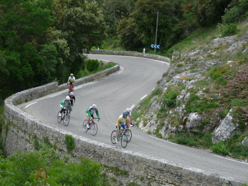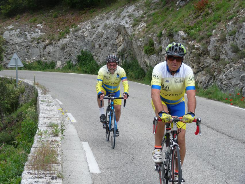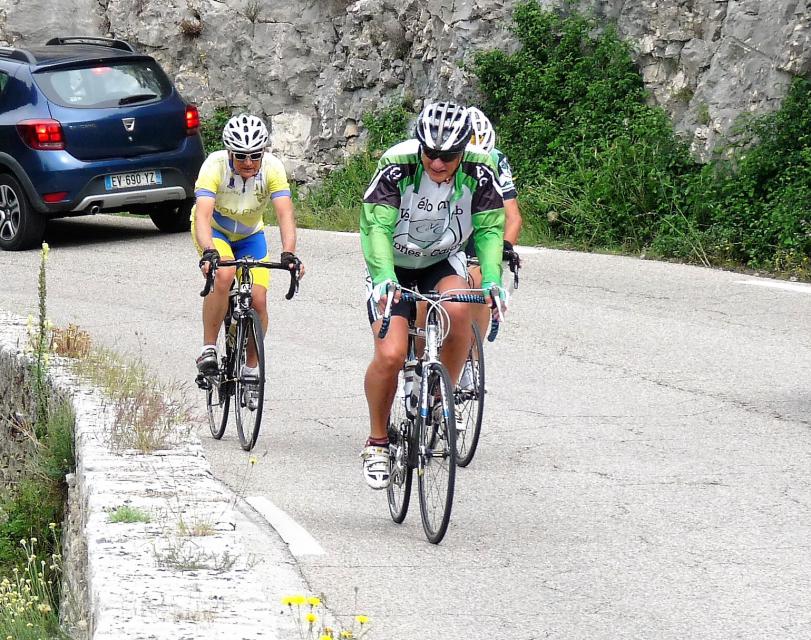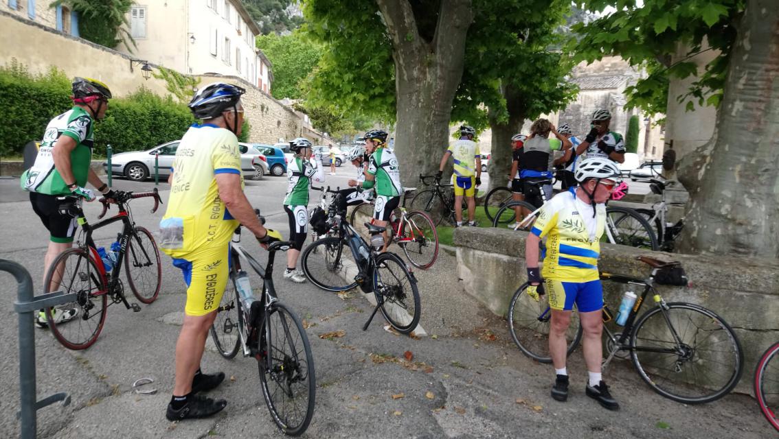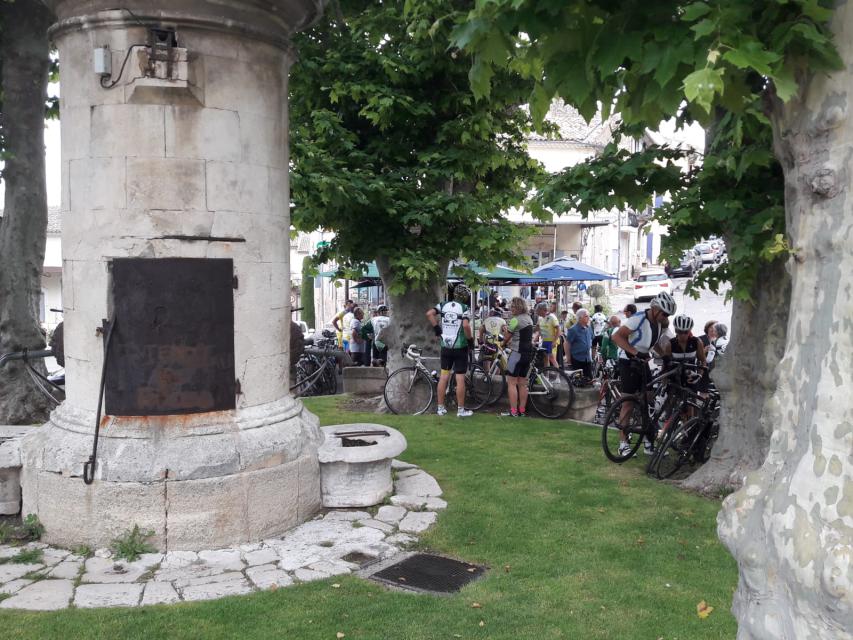 Le peloton se compose de 20 cyclistes, 8 V3C et 12 CCTE auxquels s’ajoutent les 15 accompagnateurs qui nous ont rejoints au restaurant de la poste de ROBION. A noter que les 8 V3C ont fait la grand parcours.
