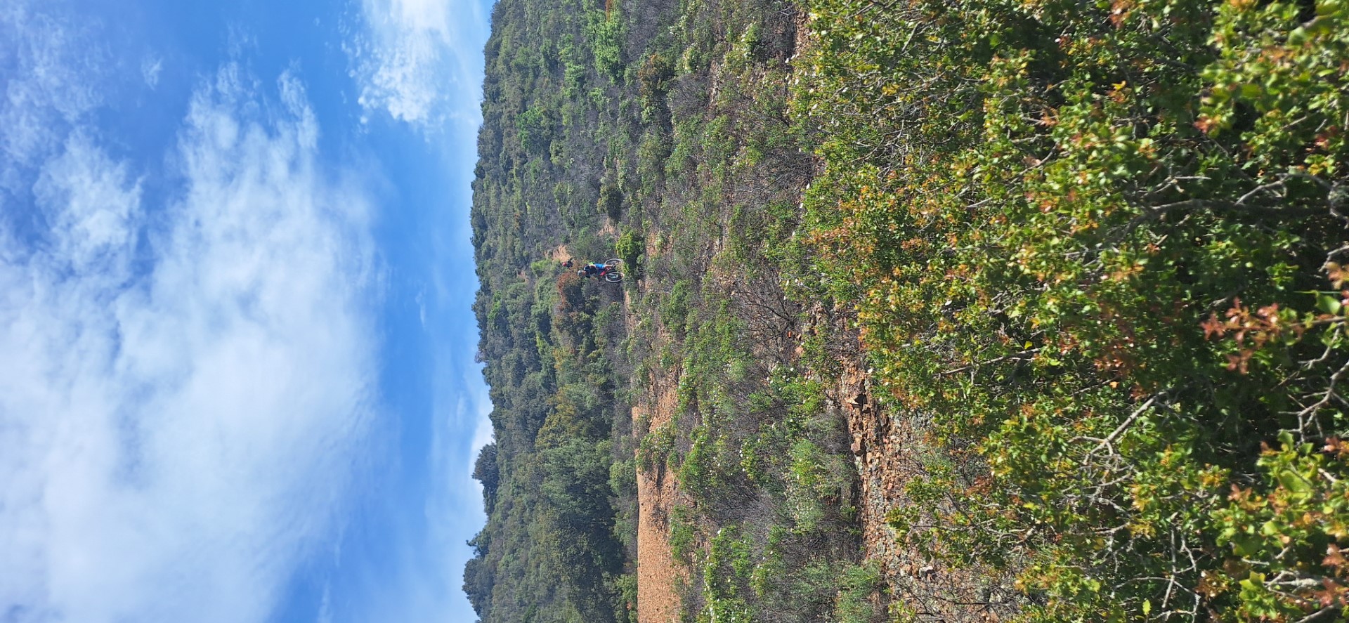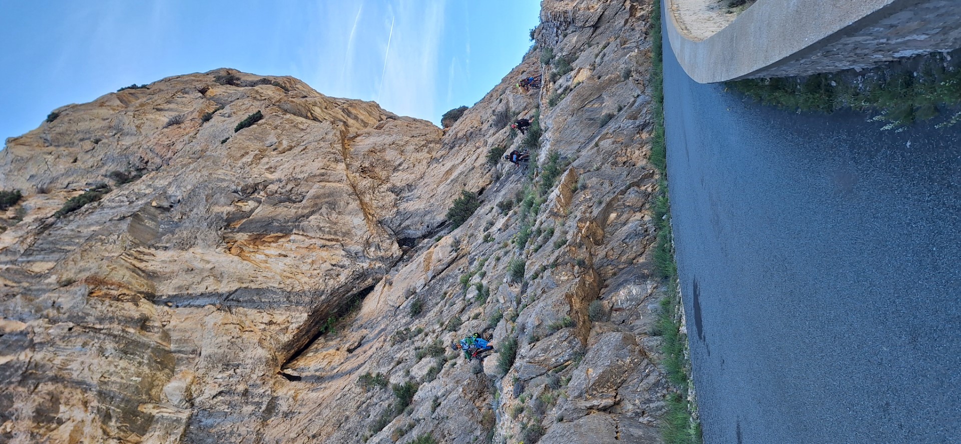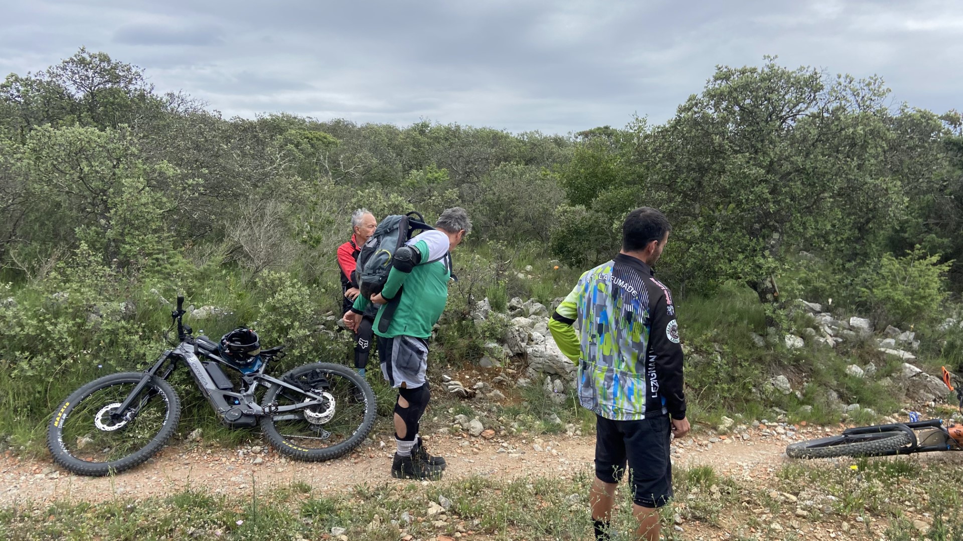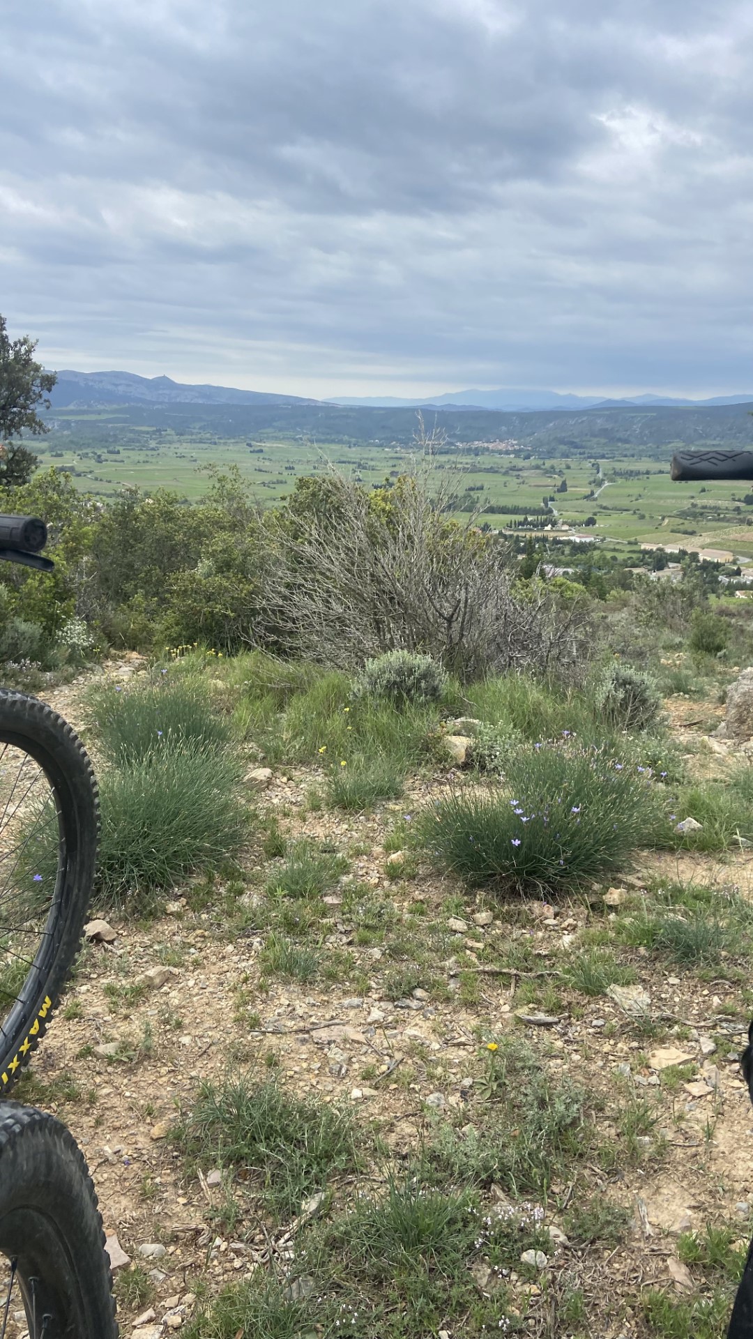 L'objectif était de rejoindre Cucugnan par le GR 367; au départ, nous avons rencontré des randonneurs qui nous ont demandé comment on comptait descendre là, ce qui personnellement m'a un peu inquiété mais j'ai commencé à descendre mais je suis pas allé très loin loin; au bout de 100m, j'ai mis pied à terre et finit la descente de 2 km à pied, voyant tous mes coéquipiers partir devant. Je pensais avoir beaucoup de retard sur eux mais quand je suis arrivé en bas, je me suis rendu compte que beaucoup avaient fini la descente à pied avec même une petite chute pour Francis.