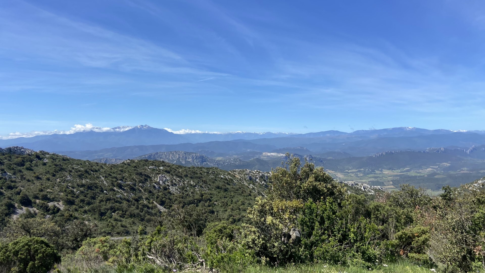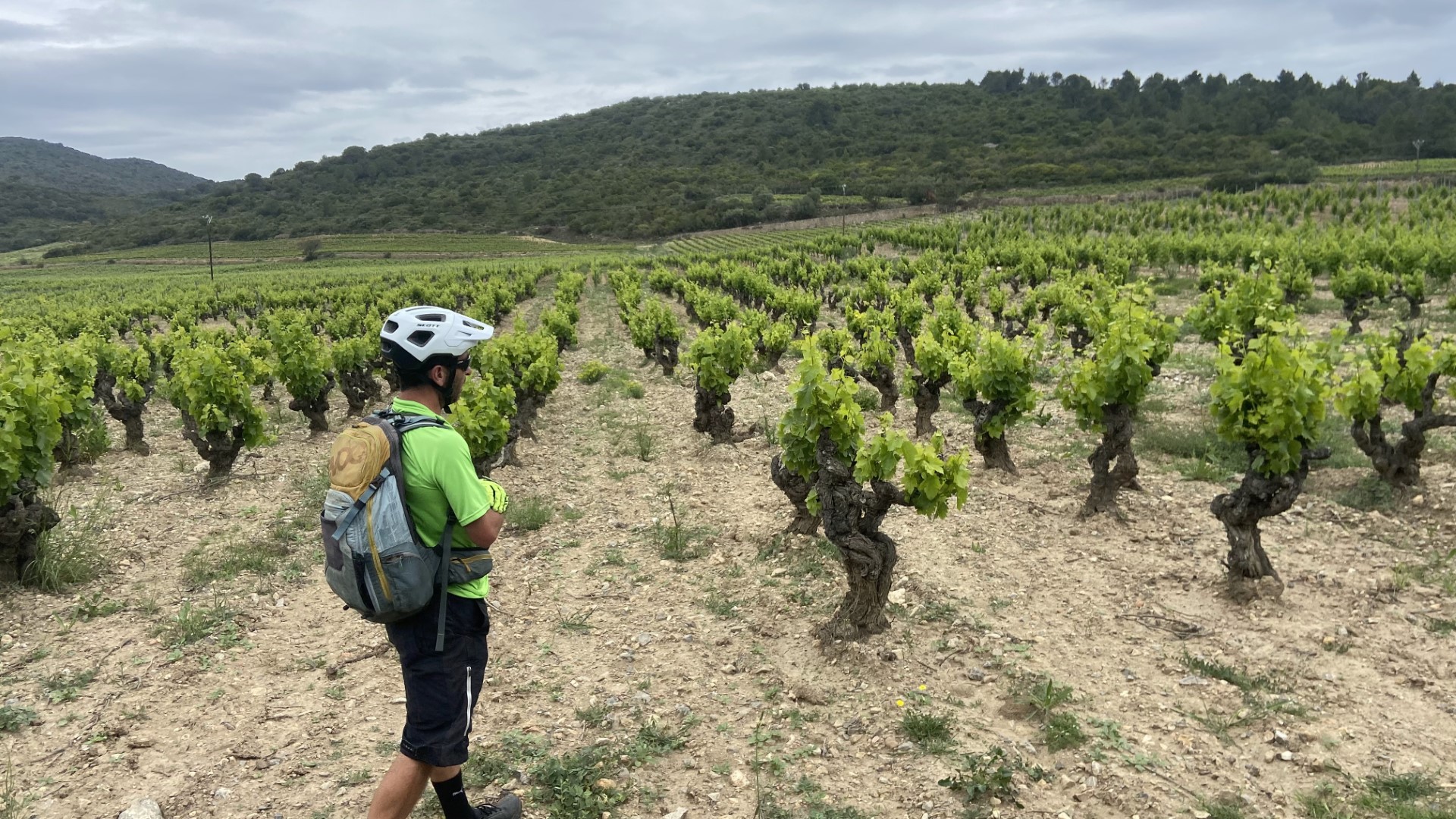 notre premier jour, Hugo est venu nous chercher au camping à 8h30 pour faire notre première sortie qui a commencé par une grimpette sur Les Rebouls suivie d'une autre sur Bagna Douce puis une descente par le col de Lès pour rejoindre le domaine viticole de Nouvelle où Hugo nous propose d'organiser une dégustation mercredi. En traversant des vignes centenaires, Hugo nous a expliqué comment on fabriquait le vin de Fitou dans la région (les différents mélanges de cépage et les particularités de sa fabrication).