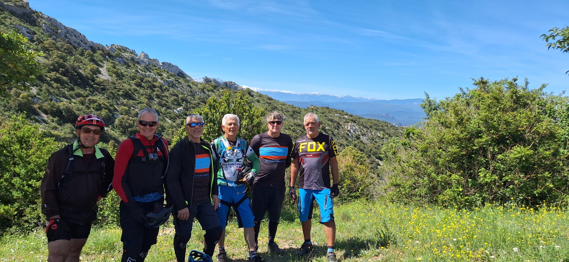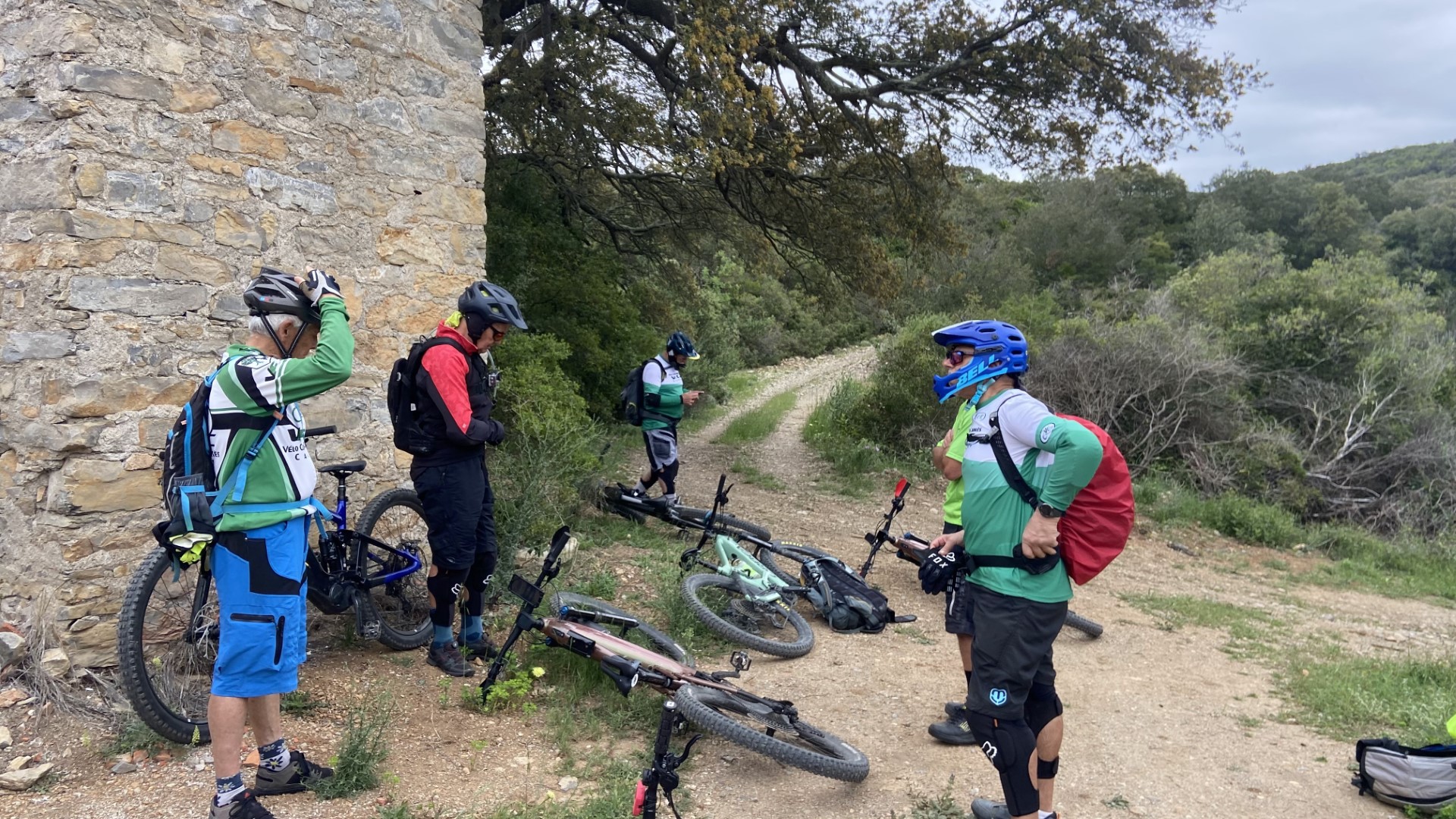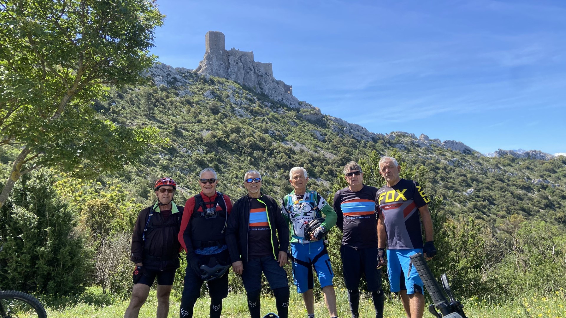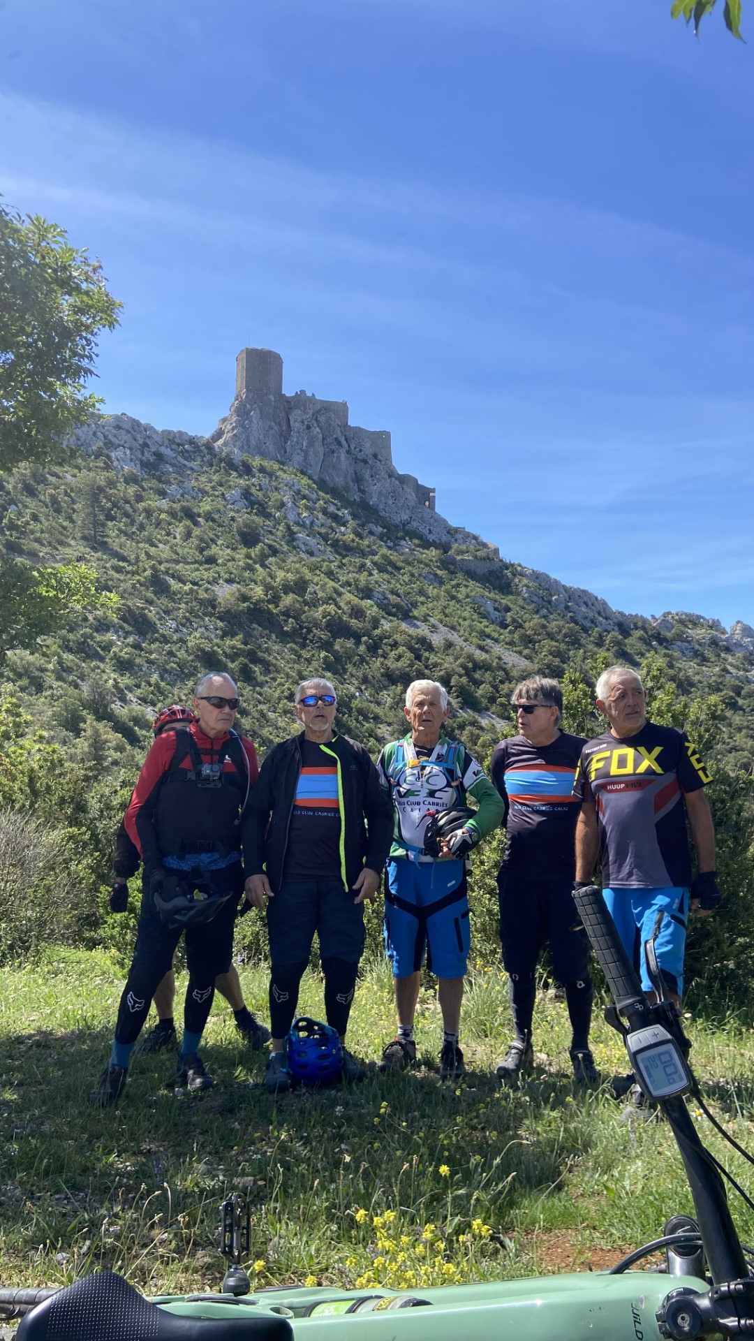 7 vététistes du v3c ( Francis, Jean-Michel, Loys, Michel Gi, Philippe H, Robert R et Vincent) sont venus à Tuchan pour ce séjour pour faire 3 jours de VTT accompagnés par Hugo le guide local qui a su se mettre à notre niveau pour proposer des sorties qui correspondaient exactement à ce qui était recherché (mix de beaux paysages, de petits singles très sympas avec en prime le tour de quelques châteaux cathares et une bonne compréhension de la région)