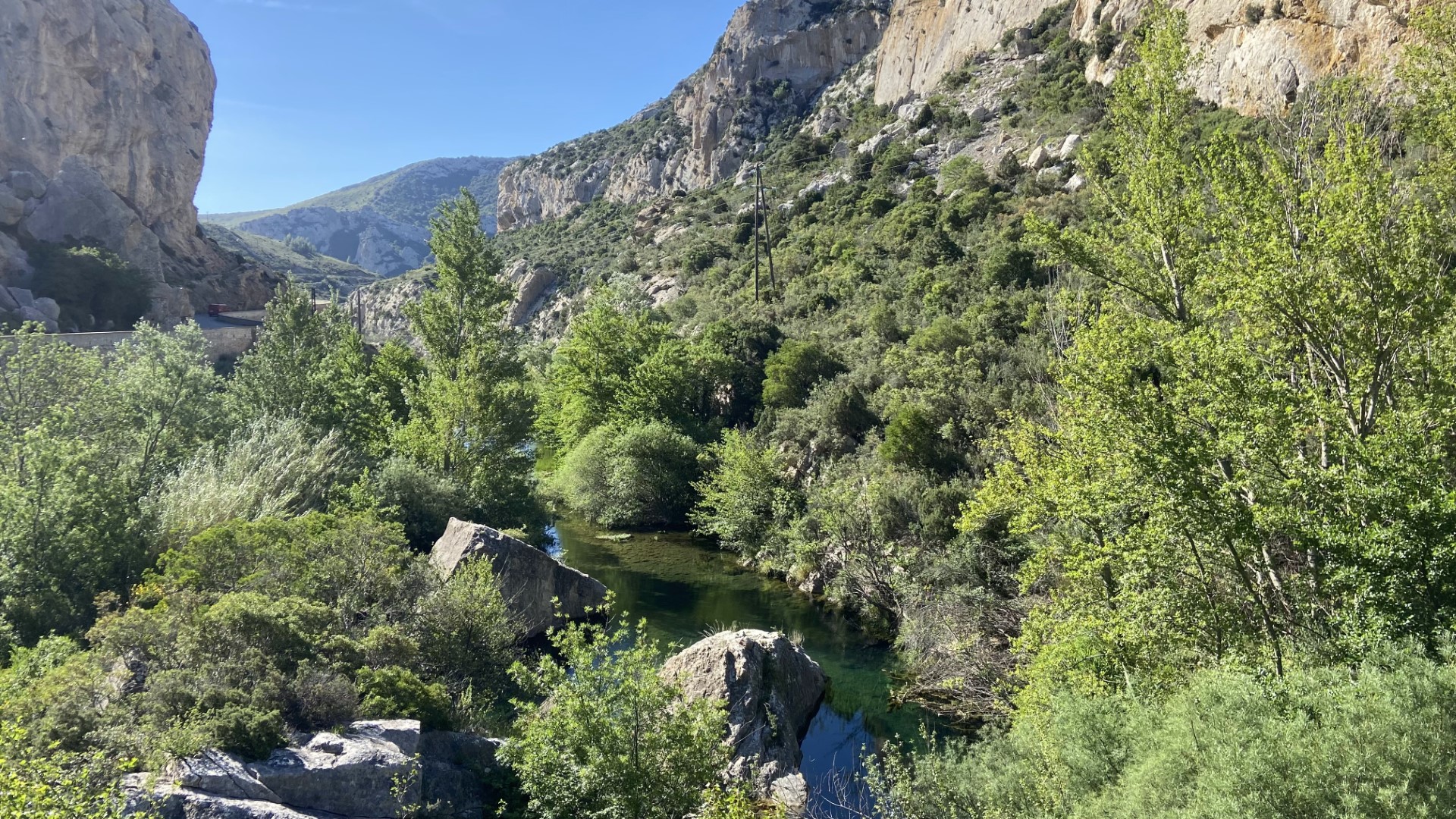 Avant de rentrer dans le "dur", Hugo nous a fait faire un petit tour de chauffe dans le Pech des Nouyès, puis nous sommes allés jusqu'au pont qui traverse le Verdouble (km 9) pour apprécier les gorges.