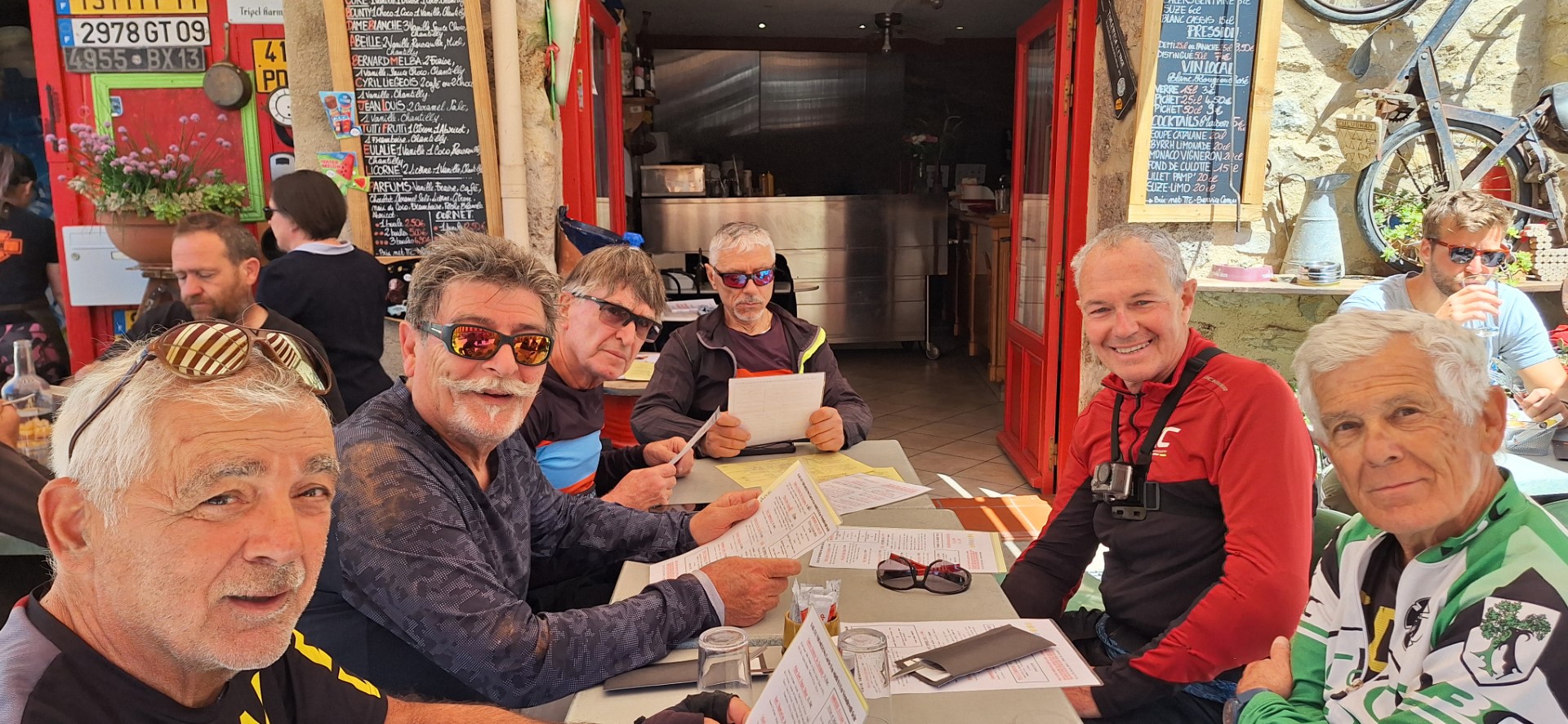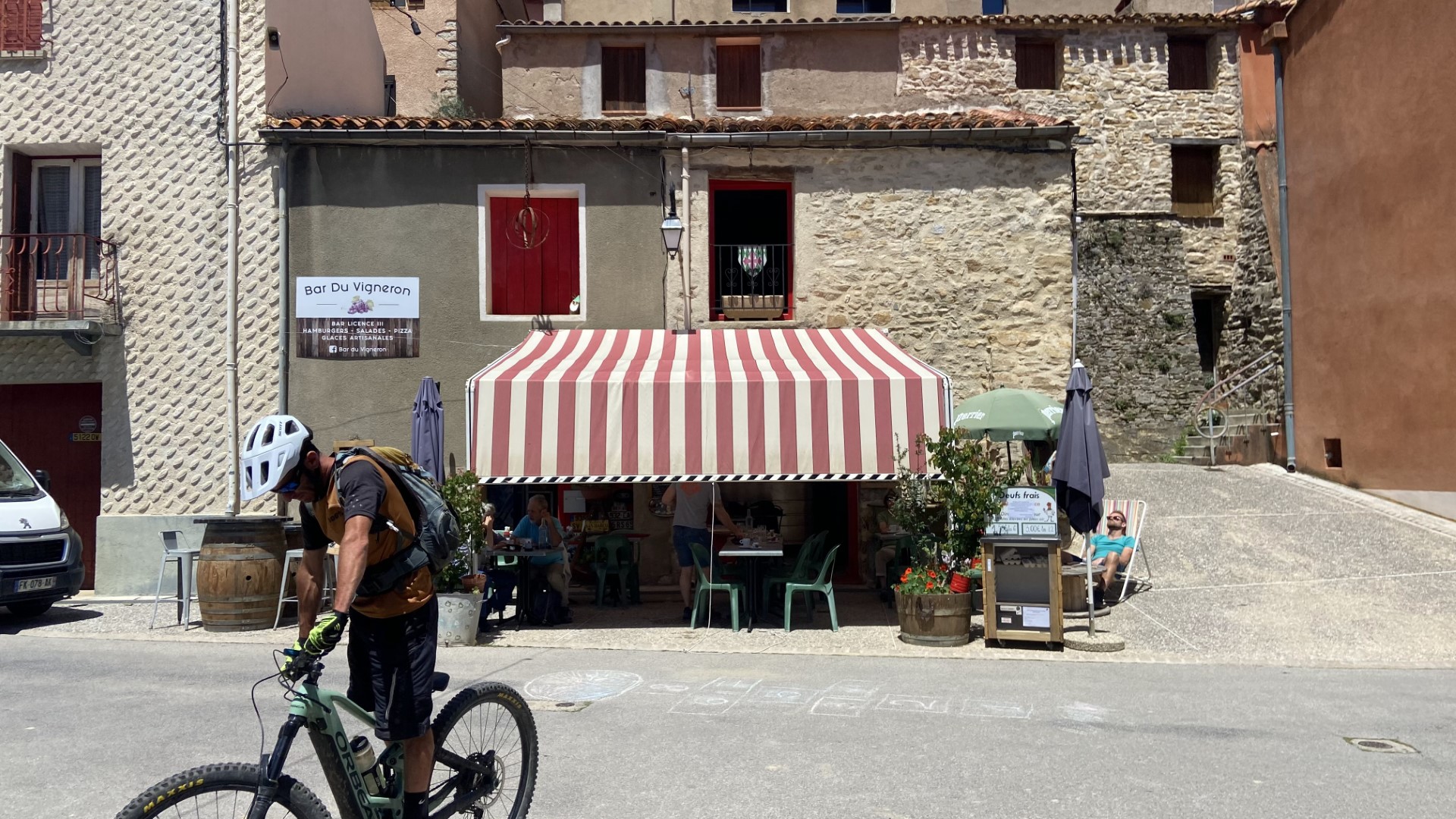 Après cette épreuve , nous sommes allés à Cucugnan en quête d'un endroit pour se restaurer et nous avons trouvé "le bar du vigneron" où nous avons pu trouver le ravitaillement idéal accompagné d'une bonne "mousse".