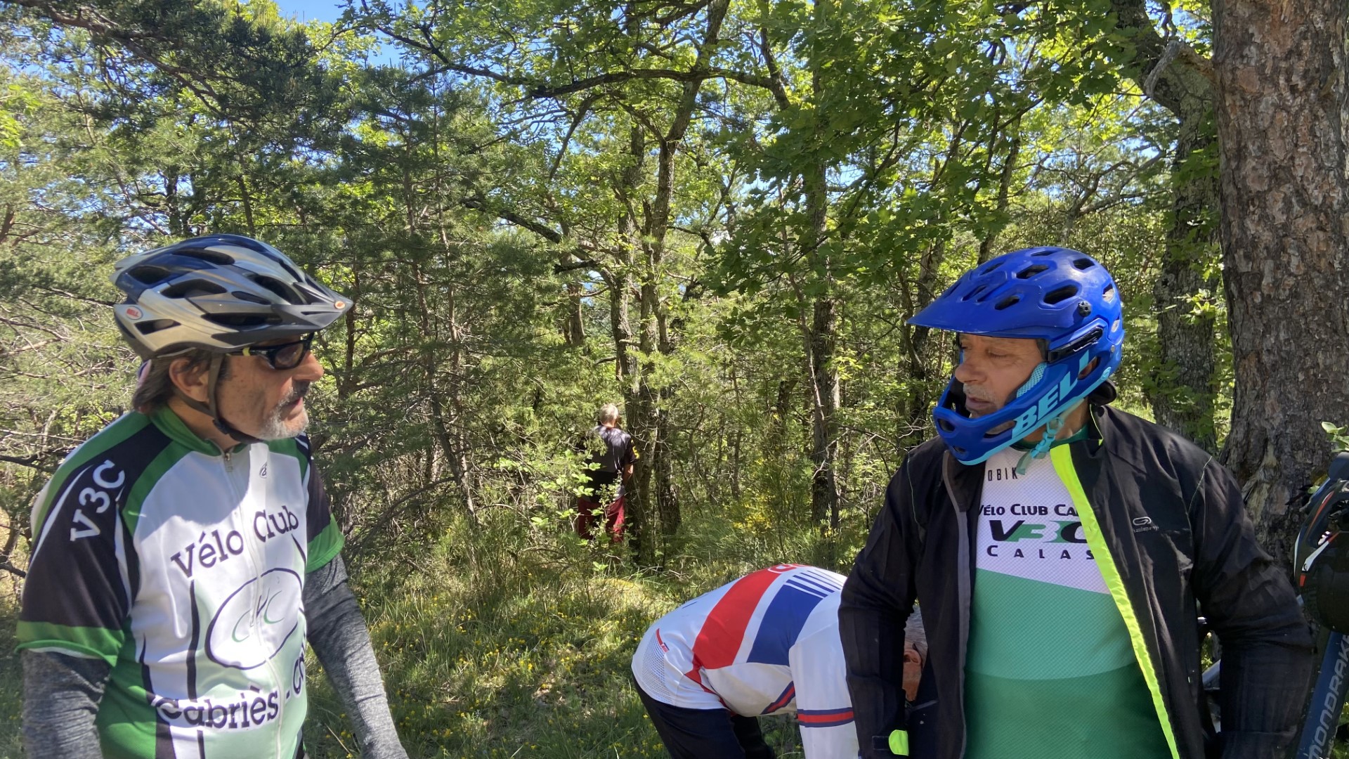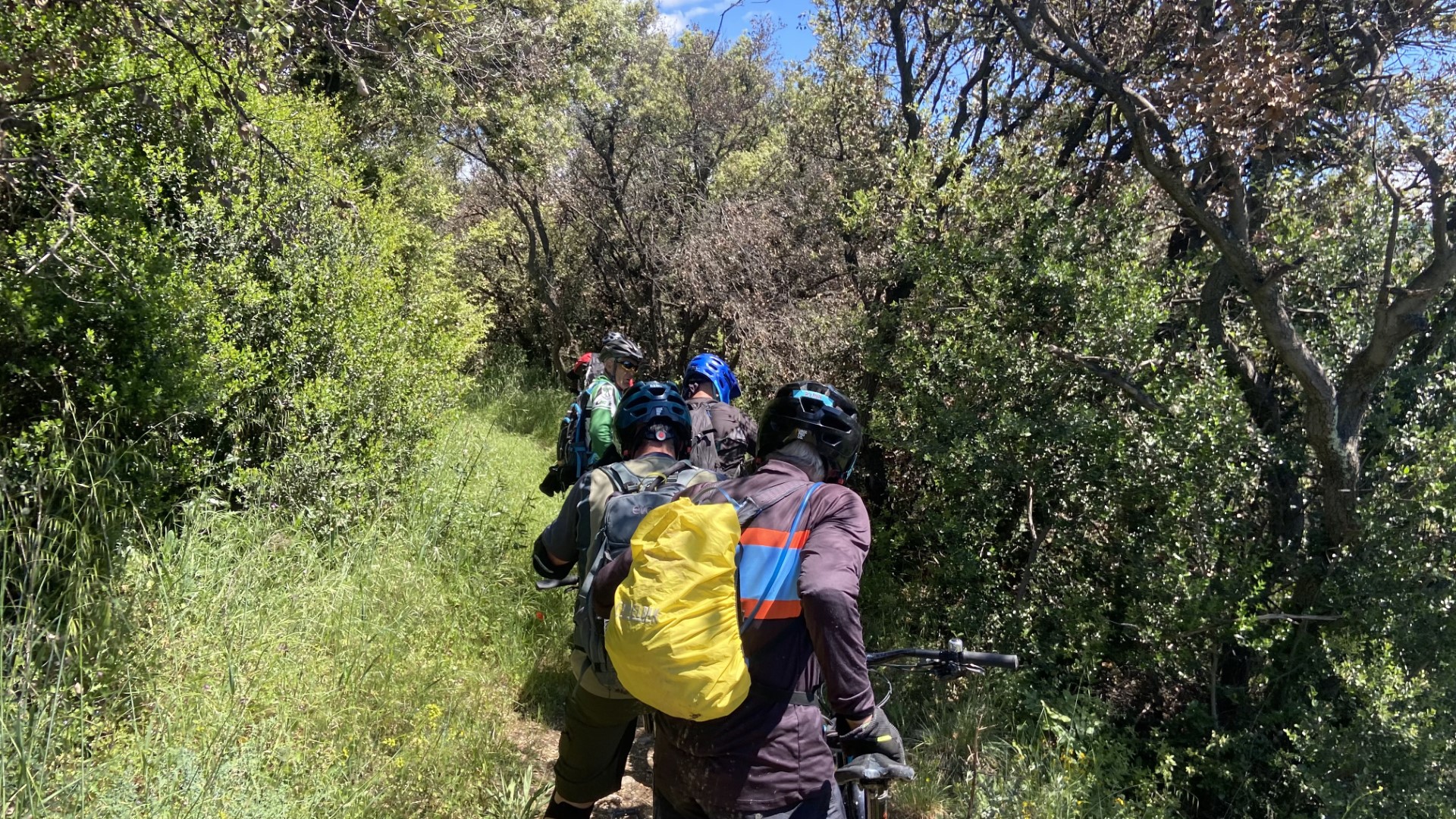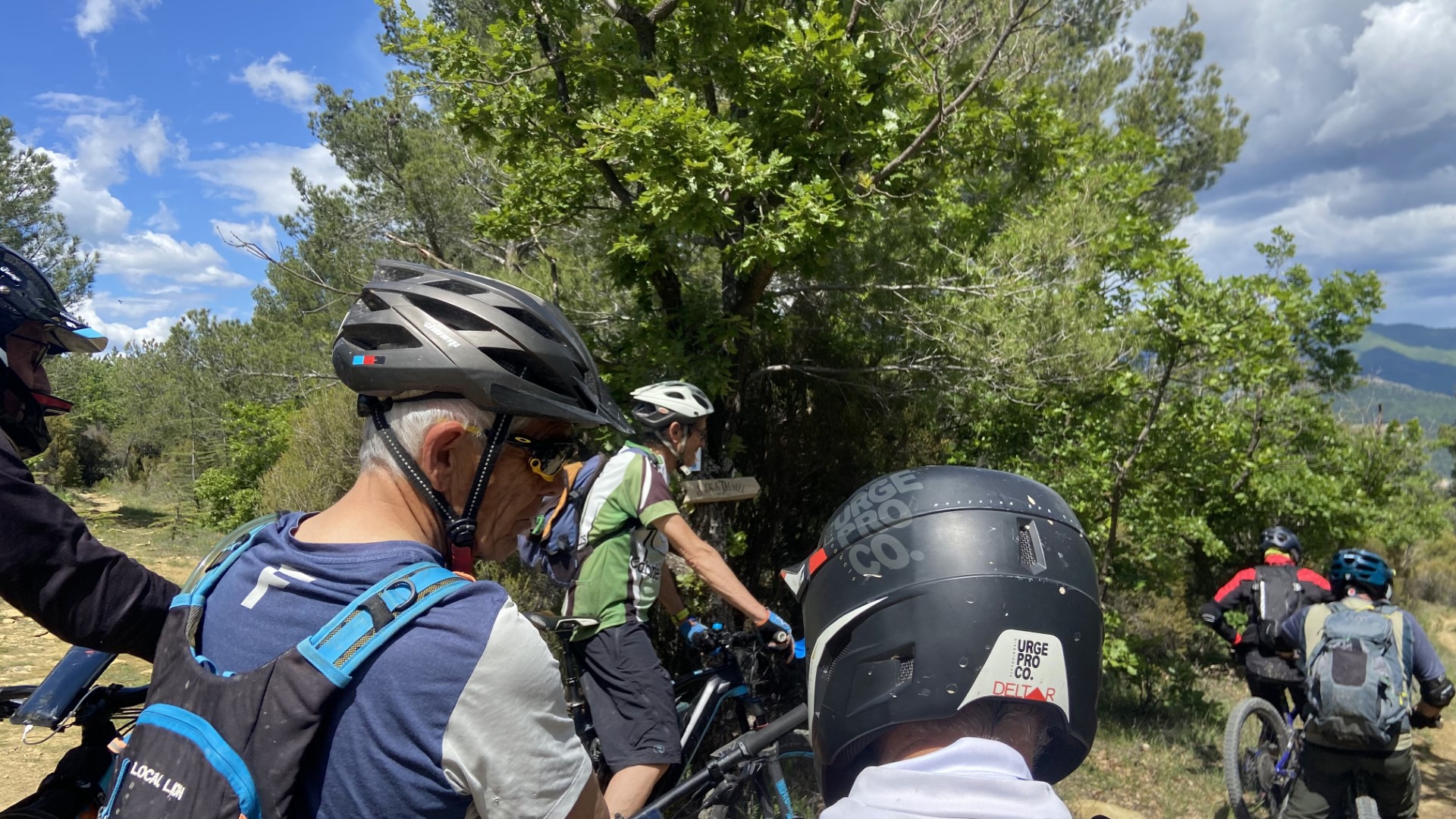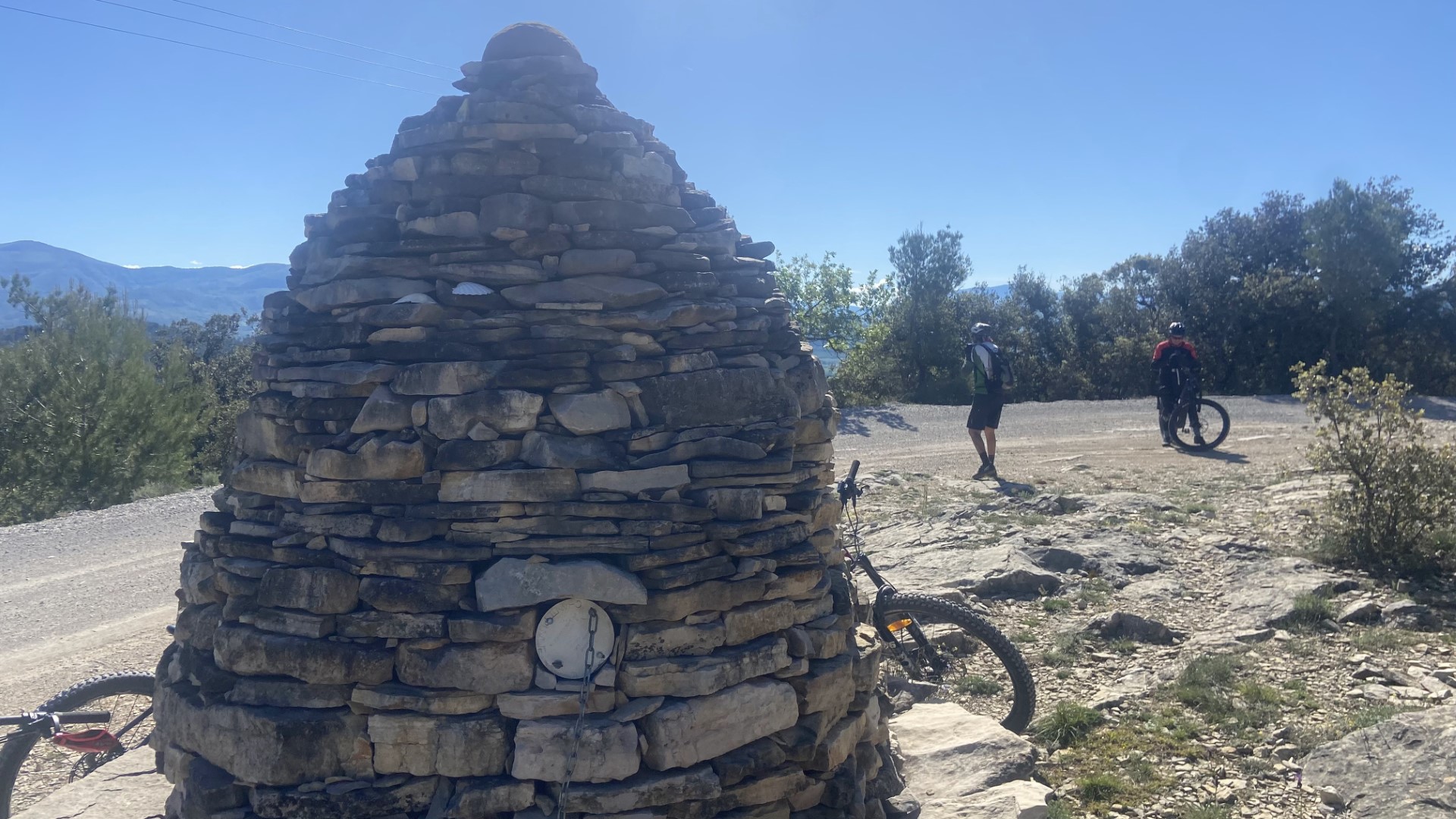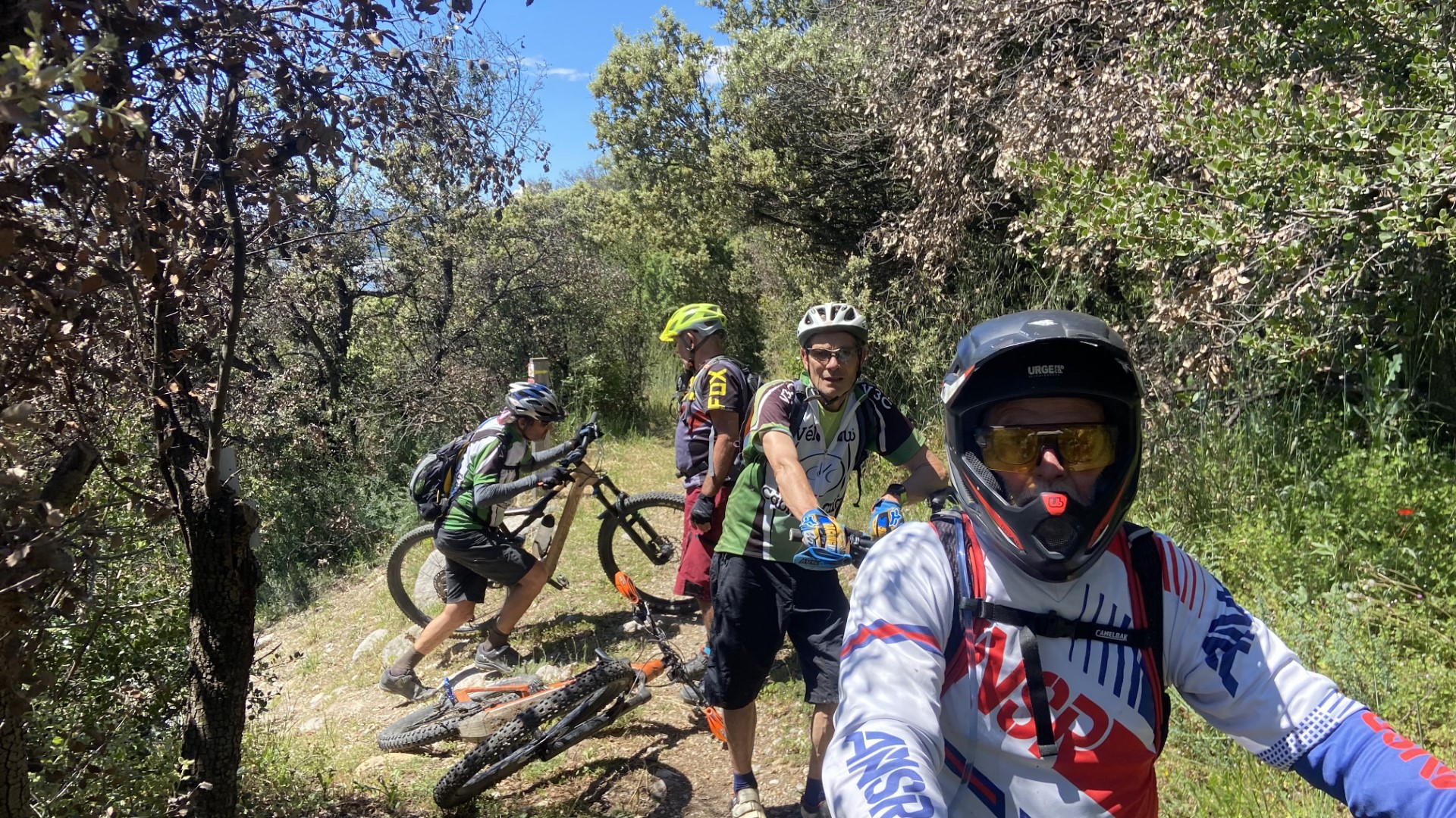 Nous sommes partis de l'office du tourisme à 9 heures pour grimper sur les hauts de Château-Arnoux jusqu'à rejoindre le GR 653D au lieu-dit La Peyrouse et de là nous avons pris la voie royale de Chante Puvine pour aller voir le Cairn de Puvine. Après, nous quittons la piste pour aller faire un tour dans les singles de la colline qui surplombe Peyruis. Puis retour par l'aérodrome de St Auban où on s'est arrêter un moment pôur se ravitailler, en empruntant des petits sentiers ludiques, et ensuite nous sommes aller retrouver 2 spéciales du parcours N° 15, tout d'abord les toboggans série de peitites montées et descentes puis la Jack Daniel, piste noire où on pouvait quand même éviter les sauts en les contournant.