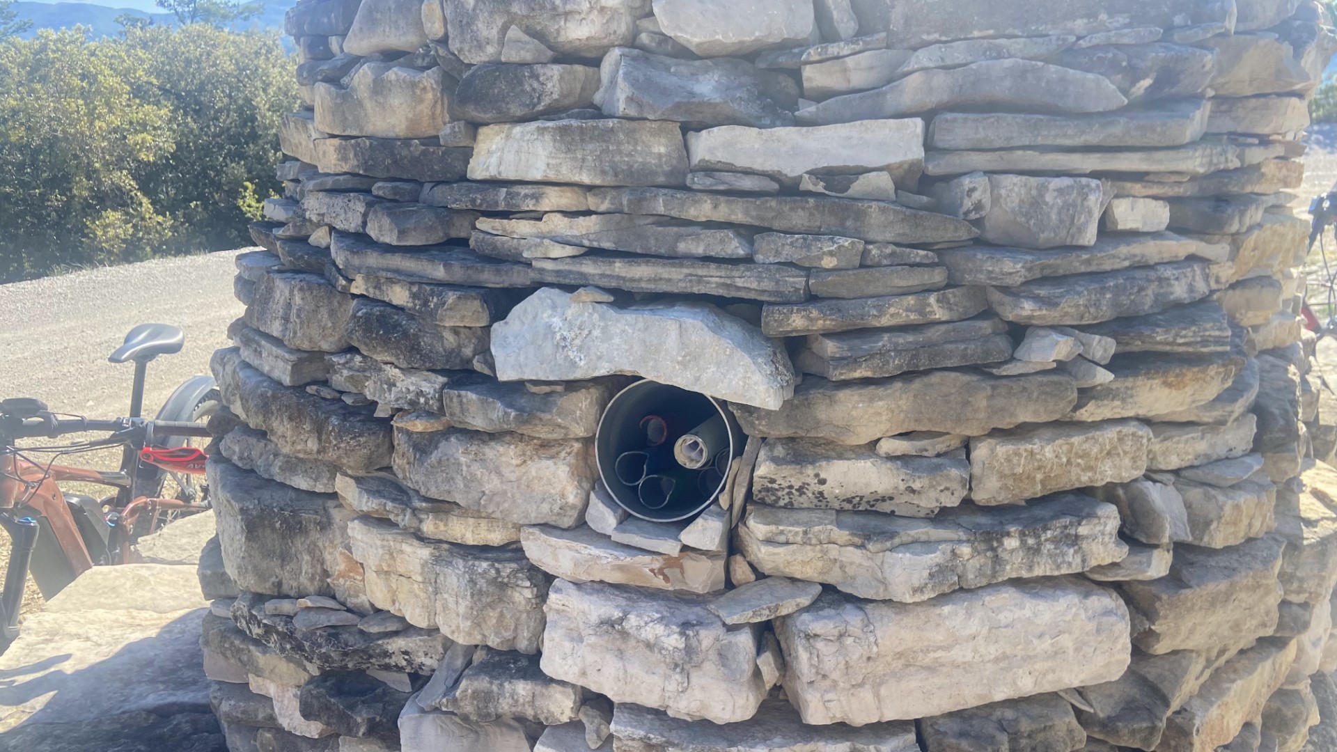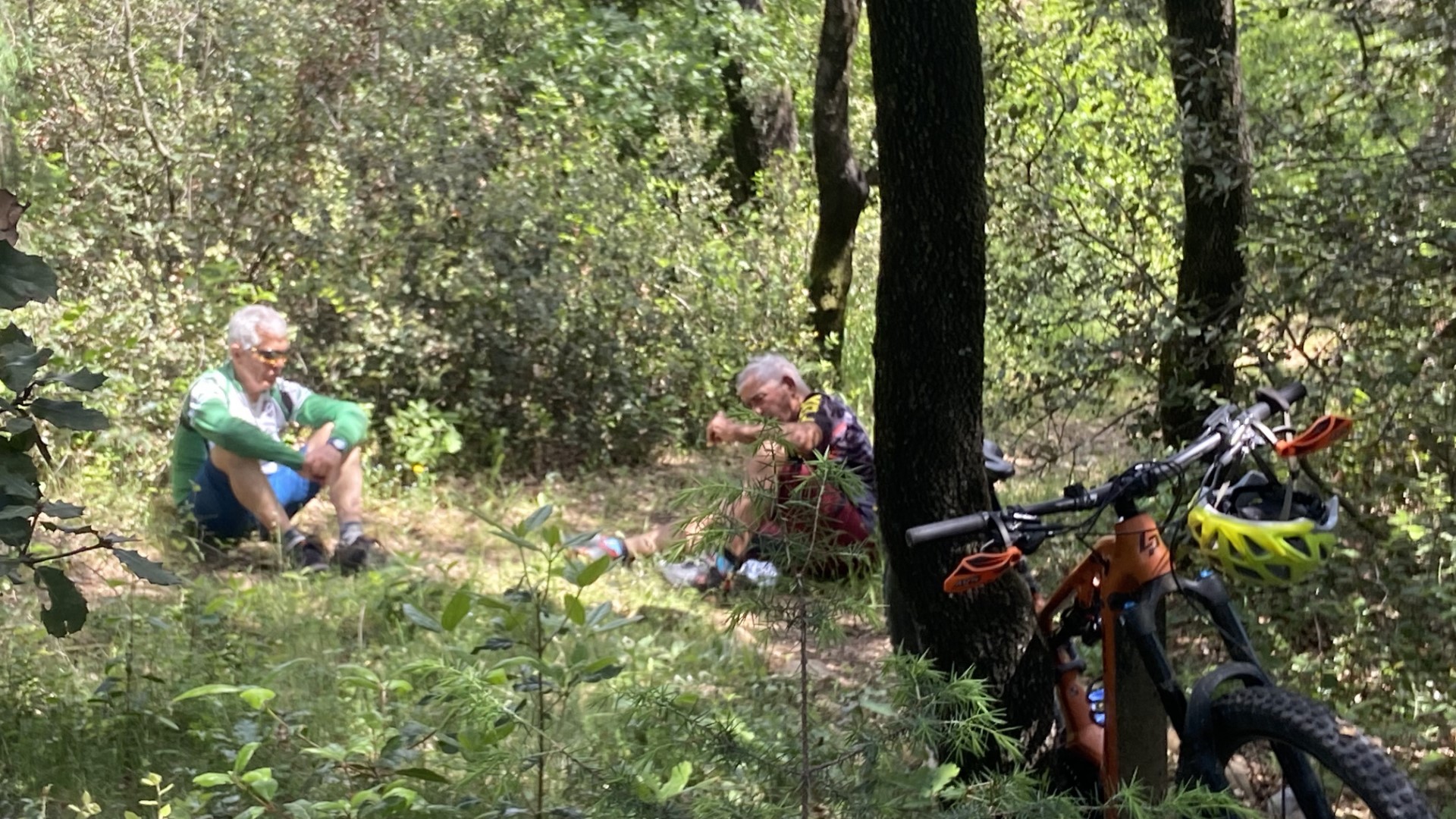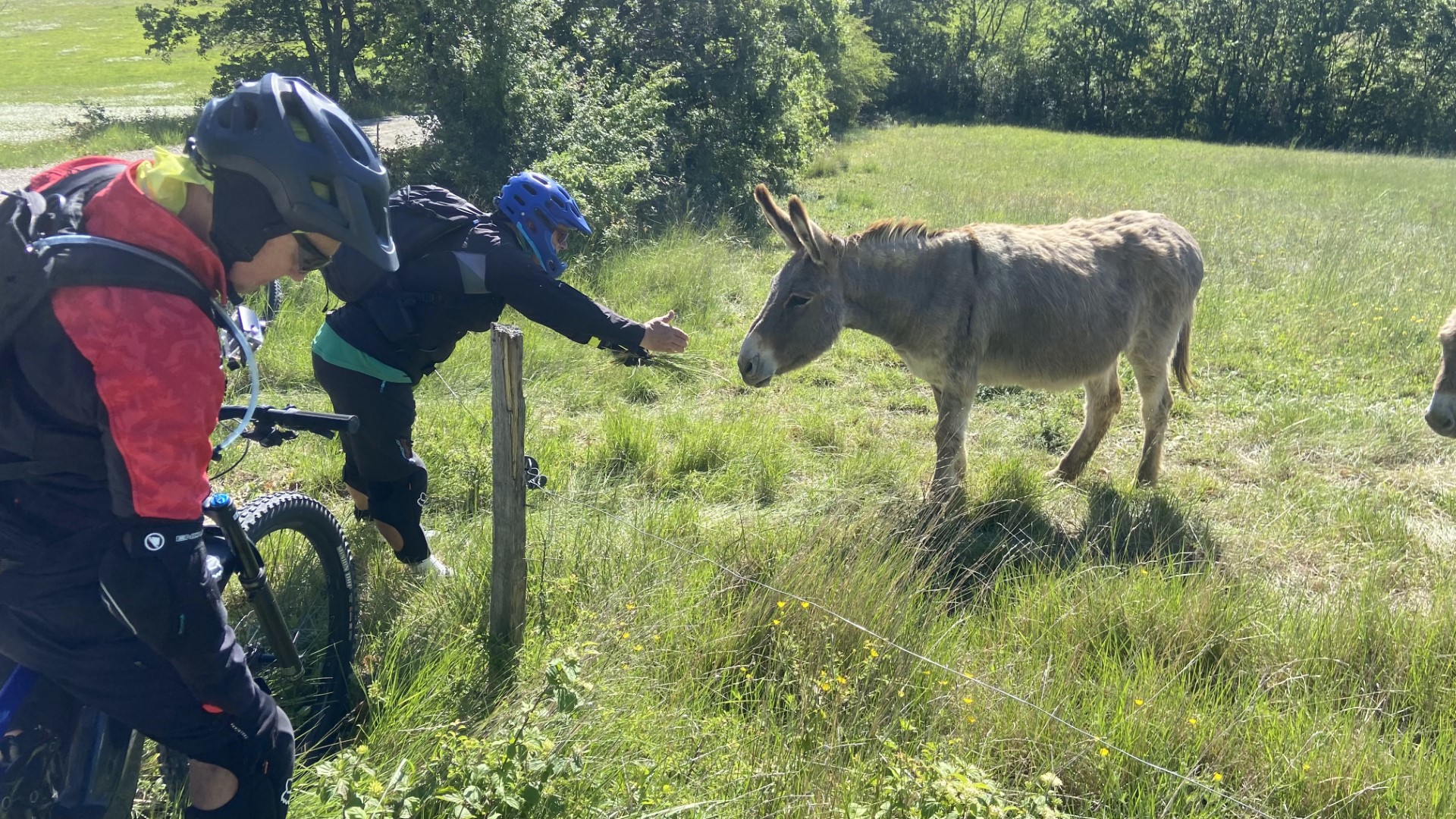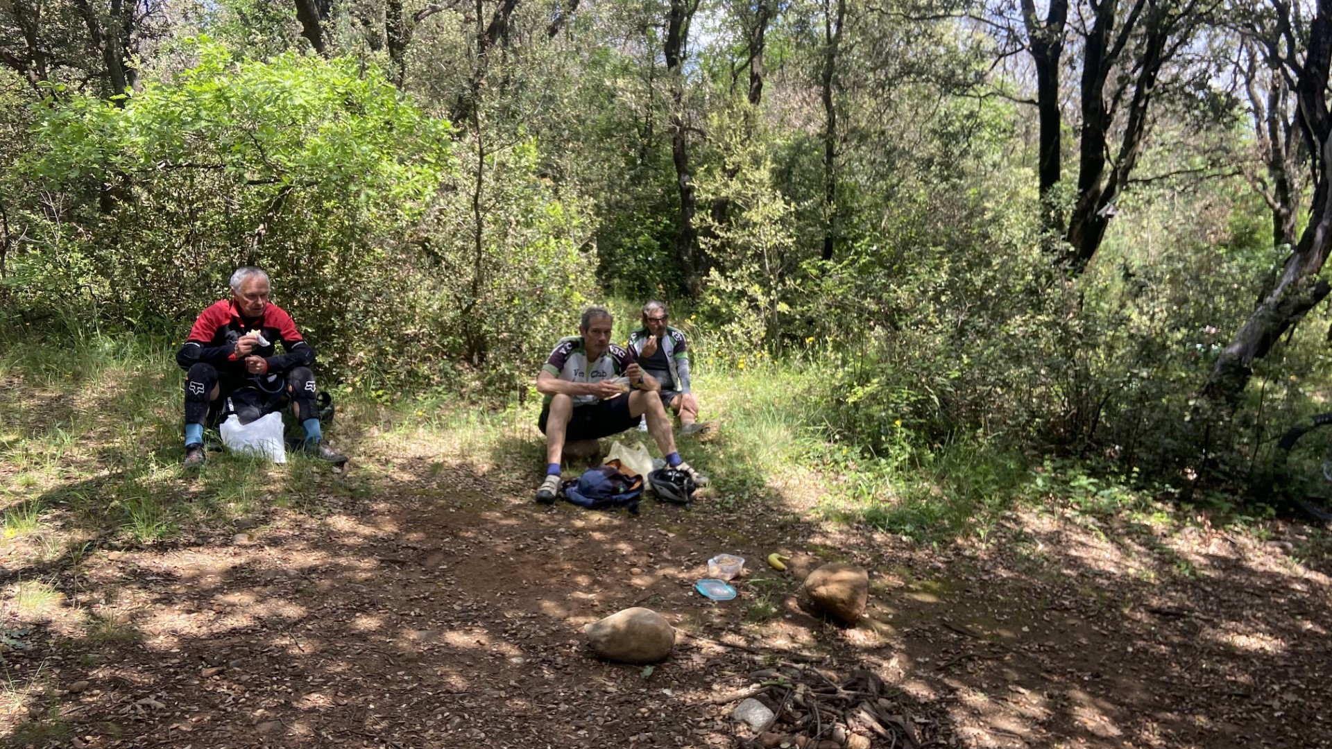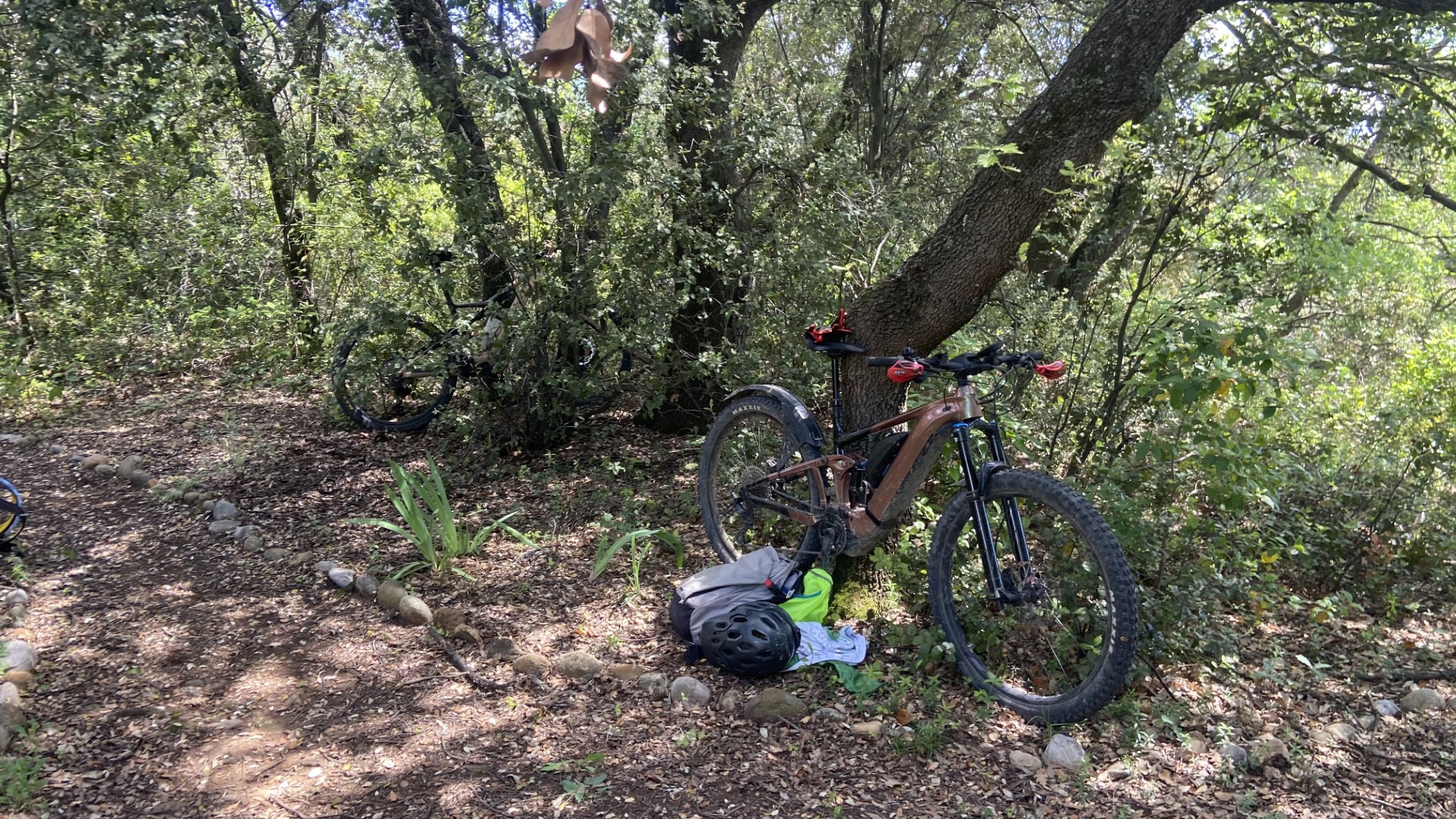 Nous sommes partis de l'office du tourisme à 9 heures pour grimper sur les hauts de Château-Arnoux jusqu'à rejoindre le GR 653D au lieu-dit La Peyrouse et de là nous avons pris la voie royale de Chante Puvine pour aller voir le Cairn de Puvine. Après, nous quittons la piste pour aller faire un tour dans les singles de la colline qui surplombe Peyruis. Puis retour par l'aérodrome de St Auban où on s'est arrêter un moment pôur se ravitailler, en empruntant des petits sentiers ludiques, et ensuite nous sommes aller retrouver 2 spéciales du parcours N° 15, tout d'abord les toboggans série de peitites montées et descentes puis la Jack Daniel, piste noire où on pouvait quand même éviter les sauts en les contournant.